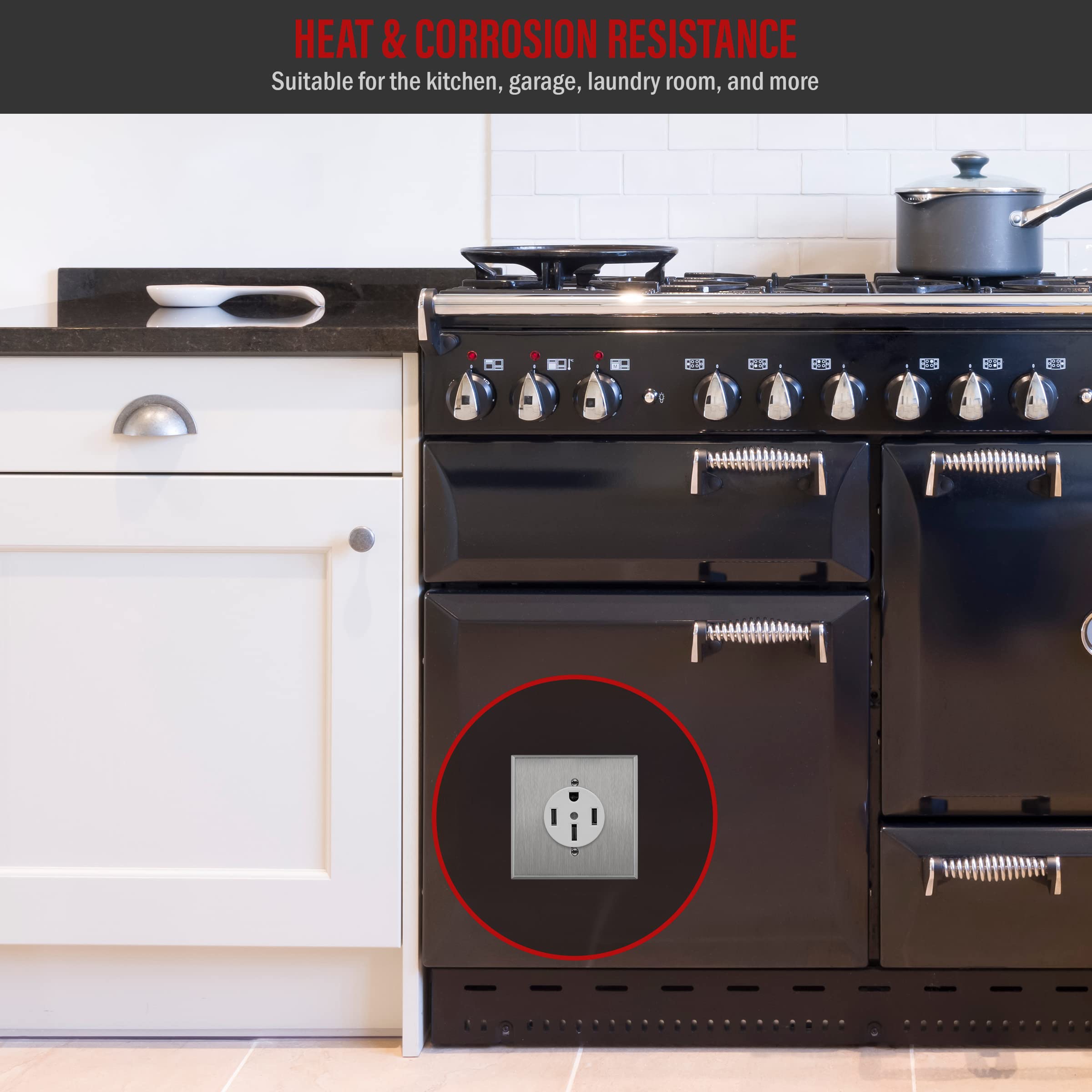 Designed to cover straight blade and locking receptacles for electrical ranges and dryers. Enerlites models 66300, 66500, 67300 and 67500