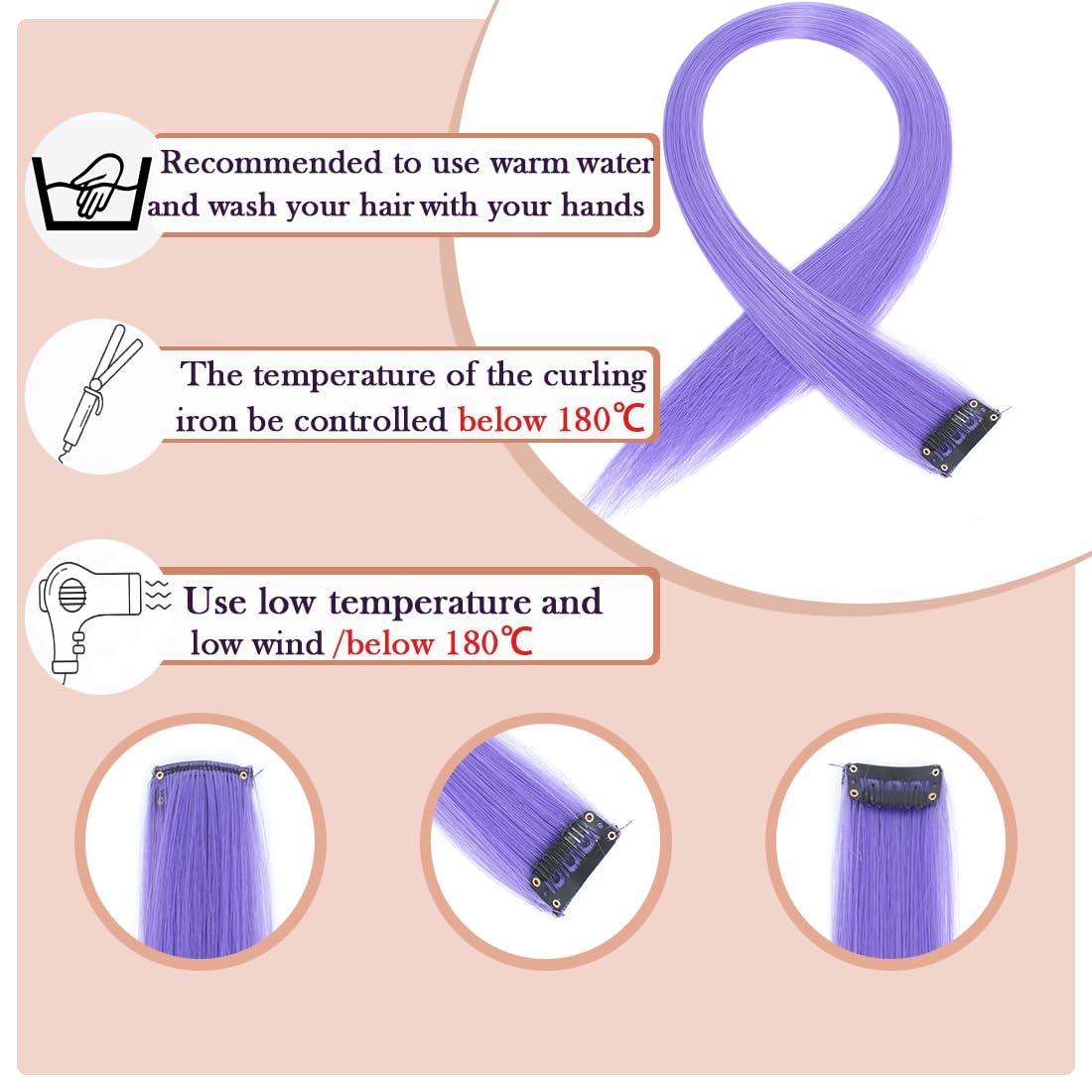 4. Suitable for various occasions: The product has a variety of colors and is the best choice for Halloween, Christmas, various parties and daily dress-up. It is also suitable for younger children who cannot dye their hair, so as to meet their desire and expectation for colorful and beautiful hair.