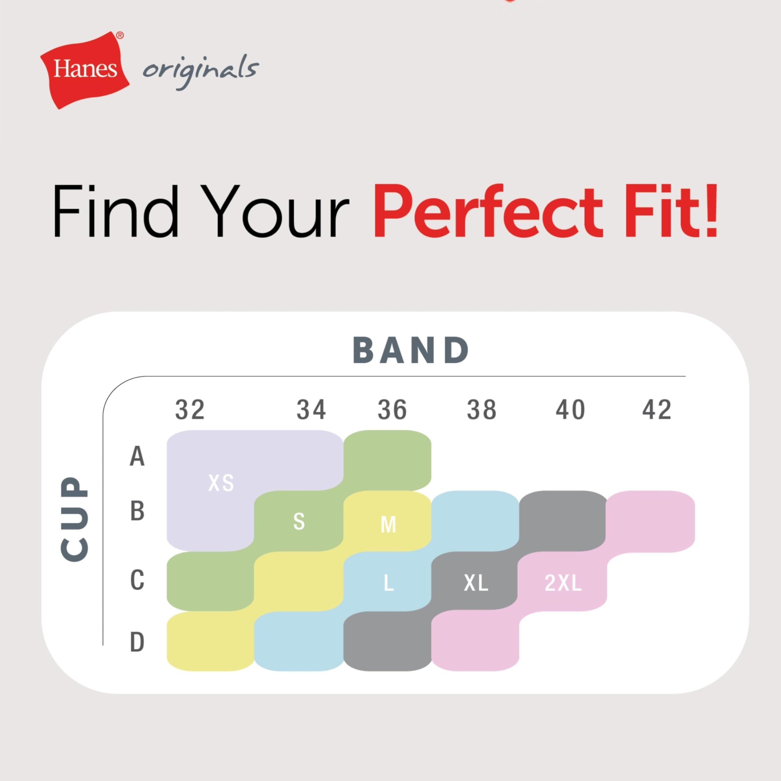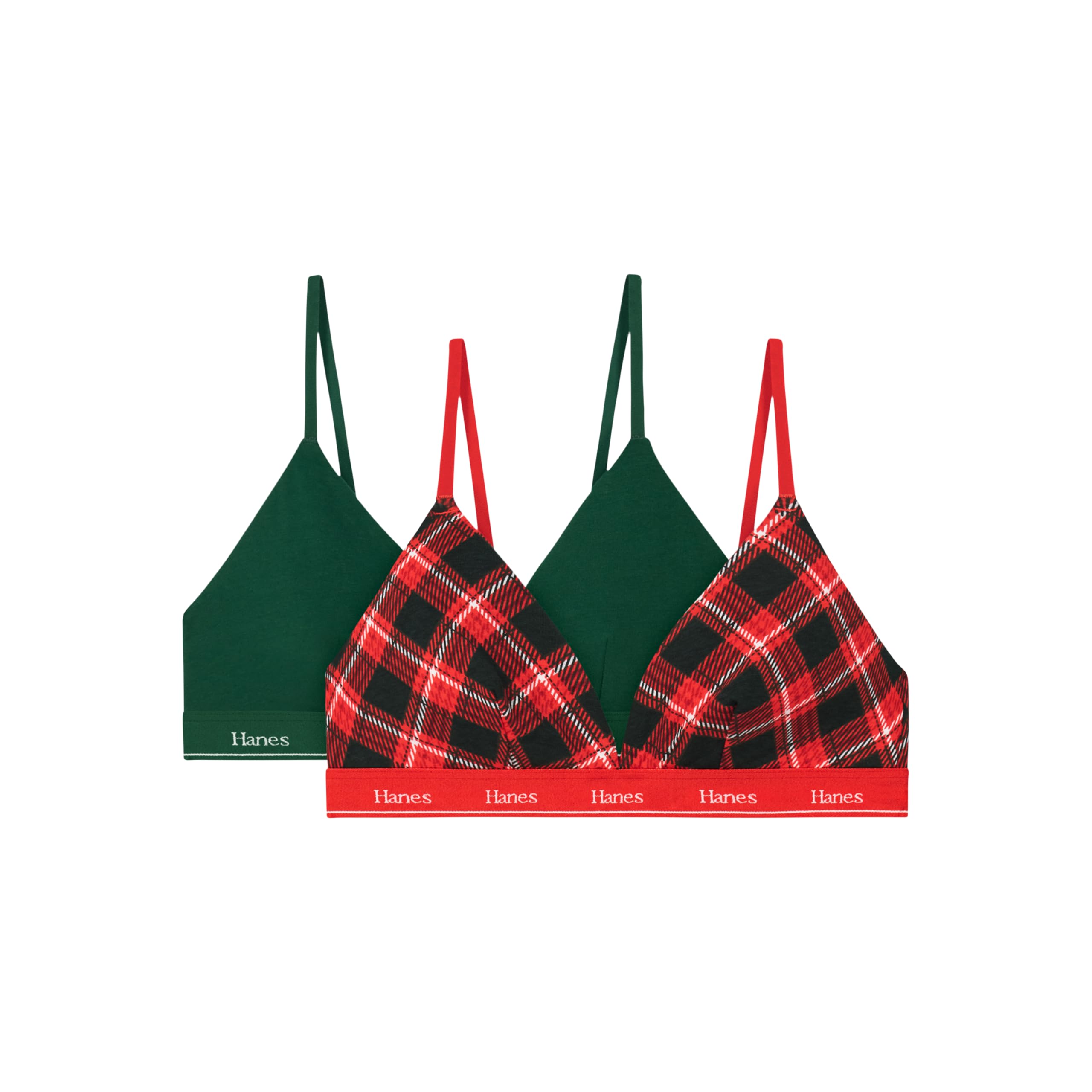 Description Hanes Originals women's triangle bralette is a better-than-basic look that pairs perfectly with your best tee or tank. Made with signature cotton-rich blended fabric designed to leave your skin feeling happy and free. ComfortFlex Fit® bras are designed to fit you, while Cool Comfort™ technology keeps you feeling comfortable all-day long. Designed with classic hook-and-eye closure, this comfortable style offers adjustable straps for the perfect, custom fit. Finished with a plunging V-neckline for added style, this must-have bralette is available in a convenient pack of two.