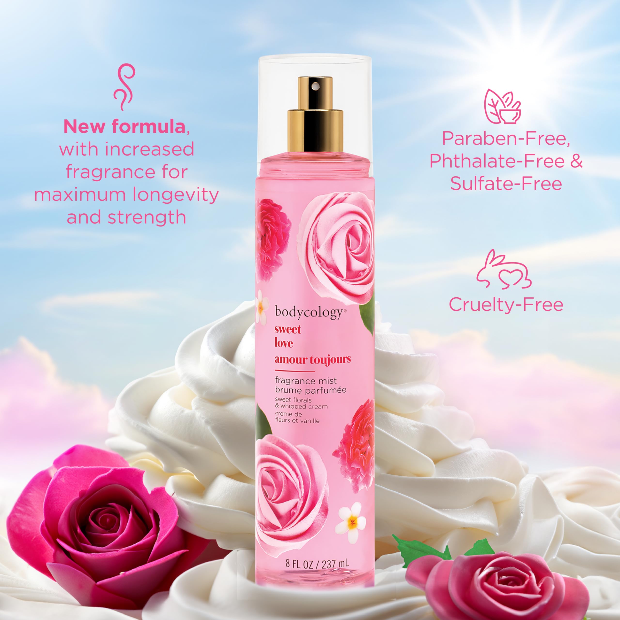 Envelop yourself in the irresistible fragrance of Bodycology's Sweet Love Fragrance Body Mist, a delightful blend of whipped cream, succulent strawberries, and comforting amber. With just a spritz or two before your day begins, you can carry the gorgeous scent of sparkling red pear, juicy cherries, and creamy sandalwood with you for hours. Luscious, fruity, and decadent, we created this fragrance with indulgence in mind. Pair it with our Sweet Love Shea Butter Body Cream for an extra treat. Mix and match with our other fragrance mists to create your unique scent. All Bodycology products are paraben, phthalate, and cruelty-free.