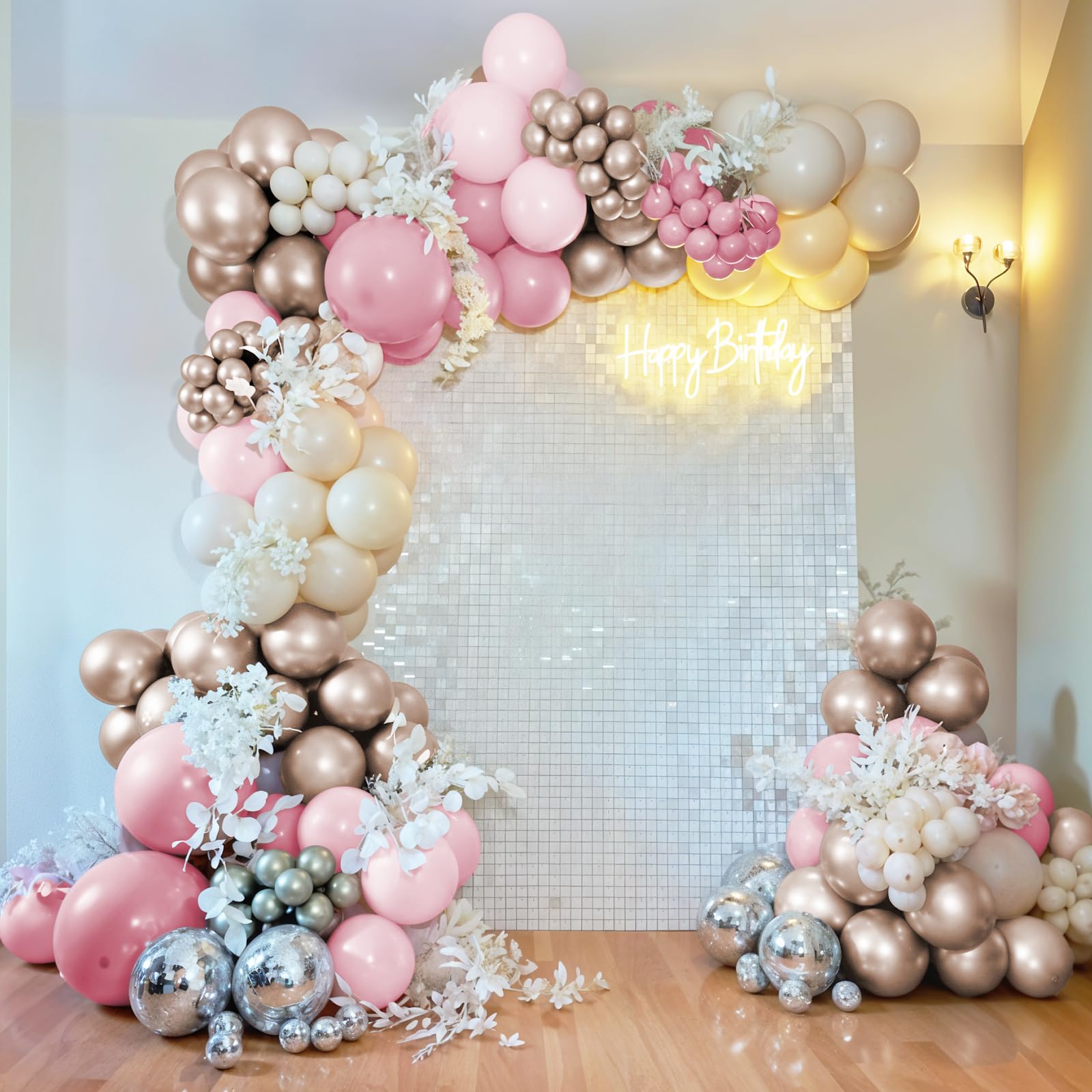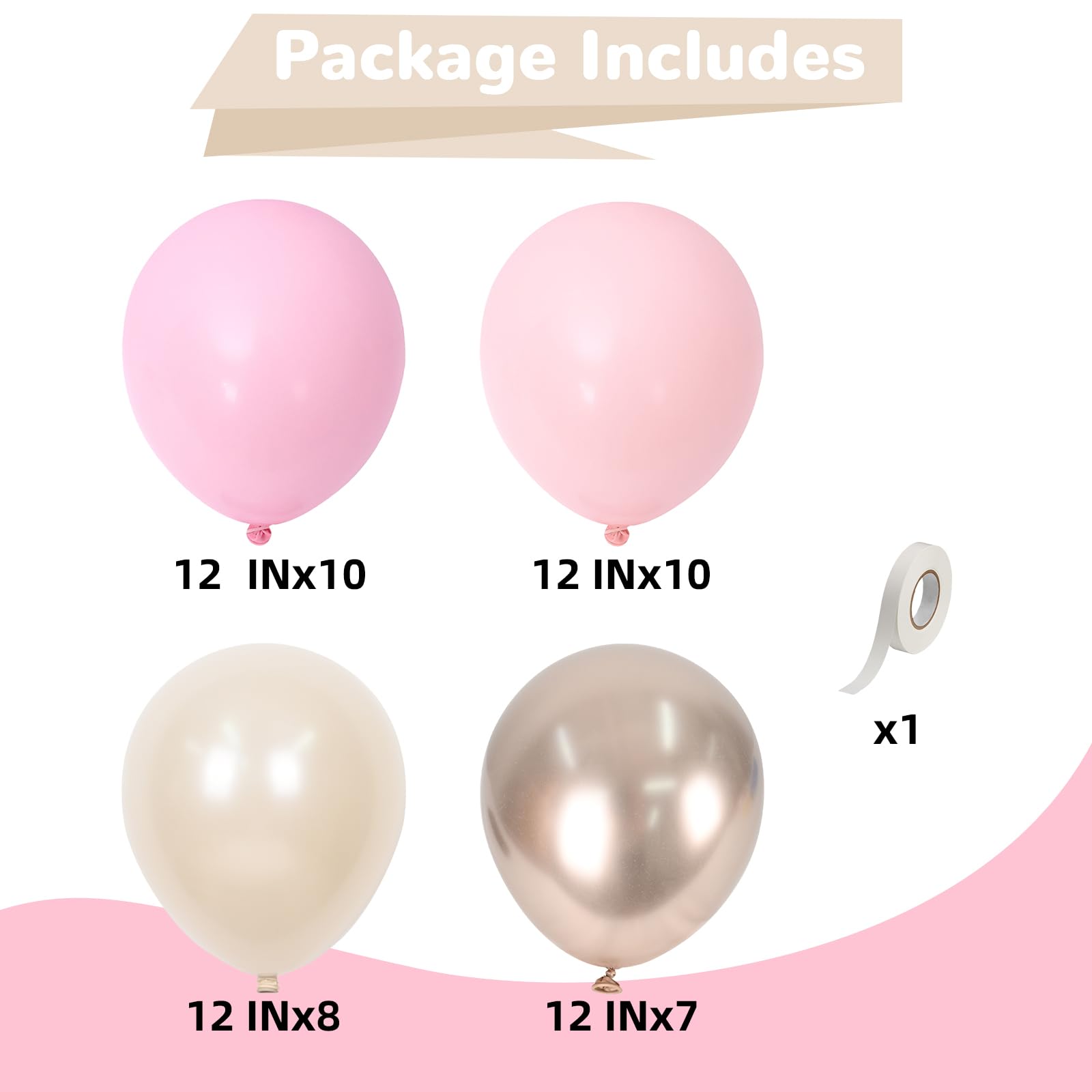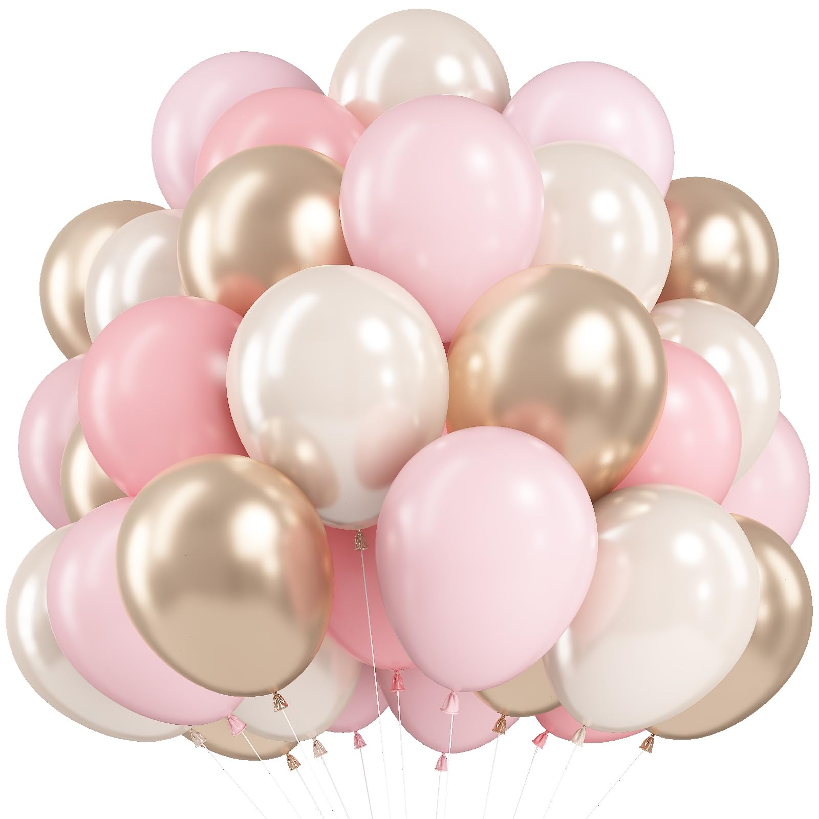 - Pink Gold Birthday Decorations Balloons for princess party, gender reveal, birthday, bachelorette, baby shower decorations for women - Specifications - Material: Thick Latex Balloon - Size: 12 inch - Quantity: 35 pieces pink balloon - Color: - pink/ sand white/ Gold - Include the balloons ribbon - Features: - These pink party balloons can be filled with helium - These latex balloons can be used to hang or stick the different shades of party balloons on the wall with balloon ribbons - These helium balloons different sizes are a great choice for any occasion, indoors or outdoors, birthday party, wedding, baby shower or family gathering, they add a splash of vibrant color and energy to your celebration - Note - Please don't over inflate the 12 inch balloons, 80%-90% is the best - Avoid direct sunlight, high temperature, pointed object and excessive friction - The color of the pink gold balloons before and after inflation may not the same, the color of the birthday balloon set will be better after inflation, closer to the color in the picture
