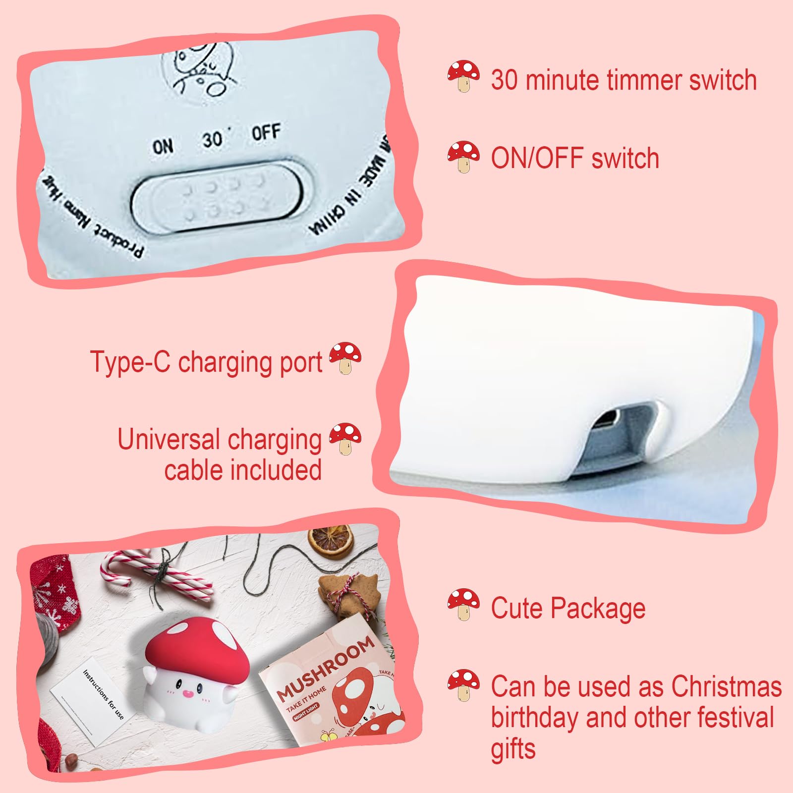𝐈𝐝𝐞𝐚𝐥 𝐂𝐡𝐨𝐢𝐜𝐞: Looking for a unique Xmas gift idea? This Mushroom LED Night Light is perfect for you. The cute night light is used as not only a bedside lamp for breastfeeding, reading, and preventing falls during the night, but also as a camping light, emergency light, and flashlight. Best mushroom for your friends, children or yourself! Also a ideal for birthday, Christmas Halloween, children's day, Valentine's Day, or for home office, party decoration, housewarming