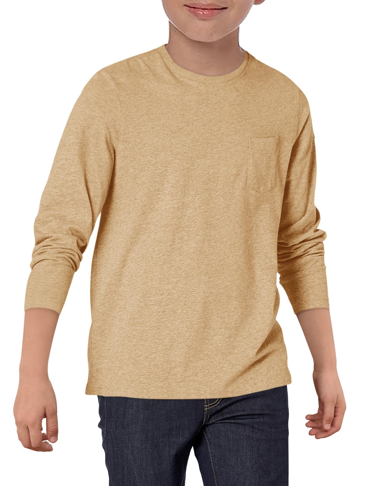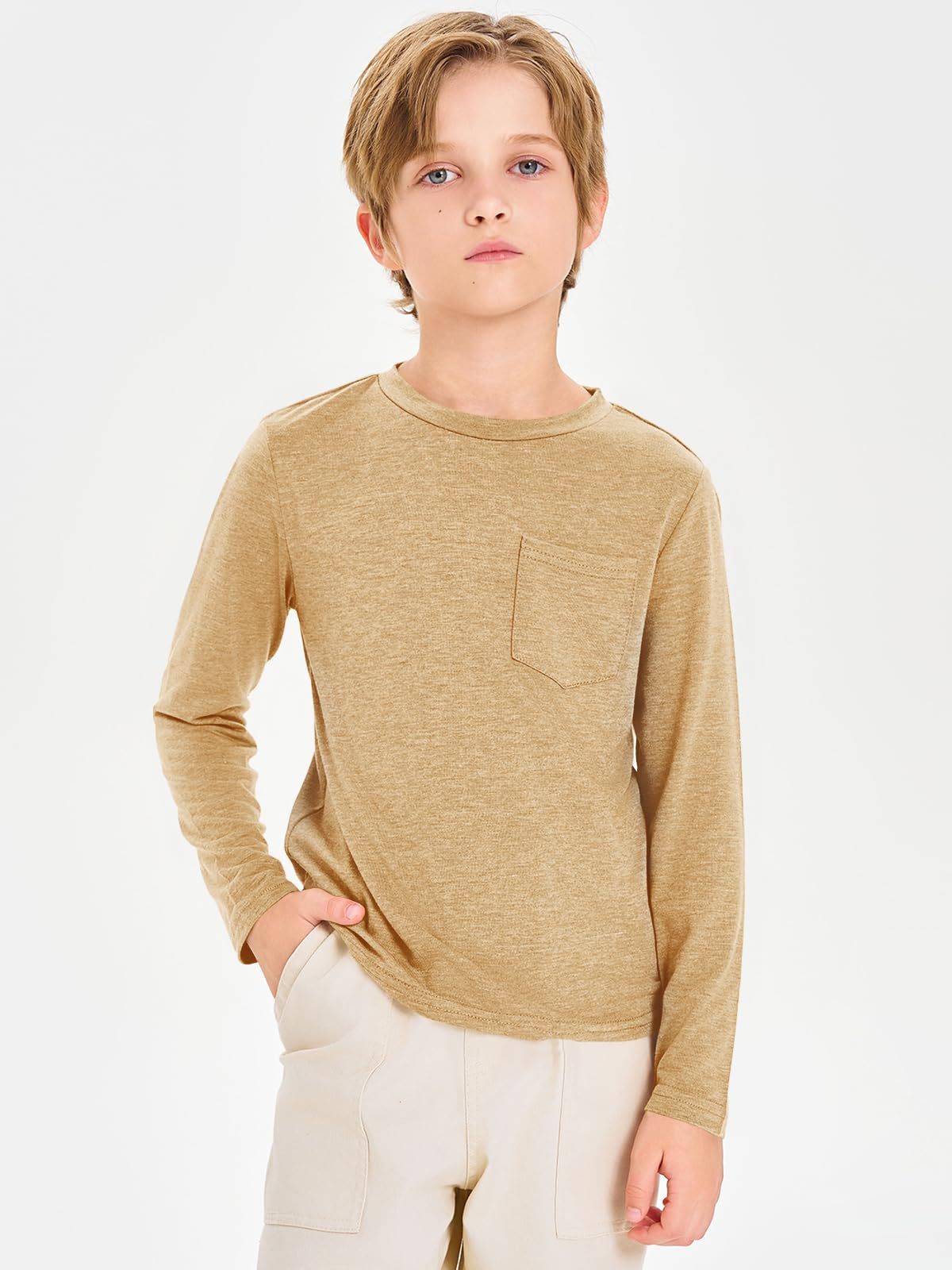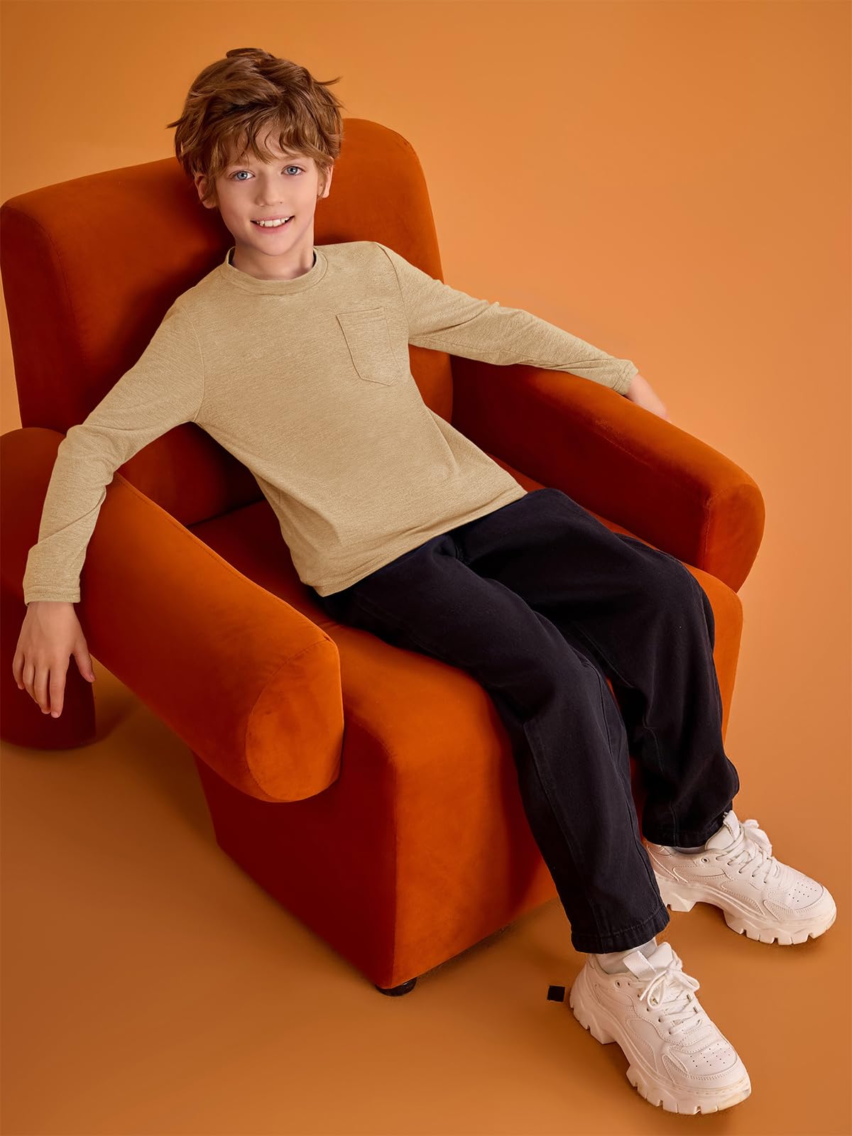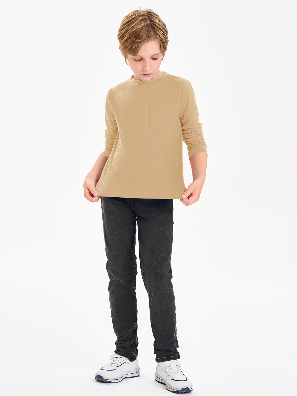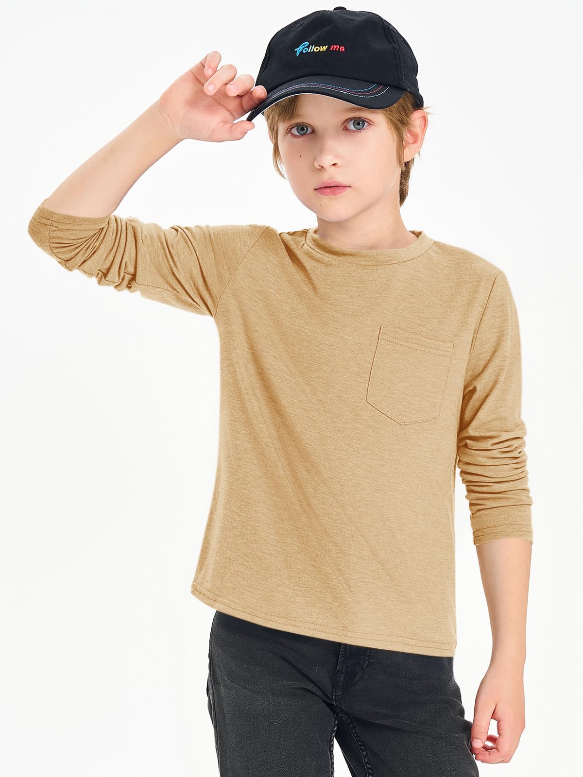 Design: Boys fall t-shirt, long sleeve shirts, basic tees with chest pocket, classic round neck and regular length, it's a good choice for your kids.The loose fit provides a comfortable fit for ease of wear and movement. Available in a range of solid colors, they offer a clean, versatile look that easily matches any bottom, making them a wardrobe staple for boys