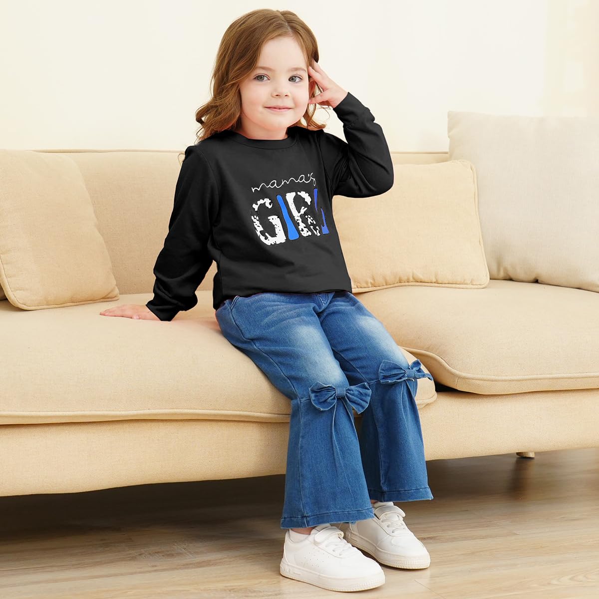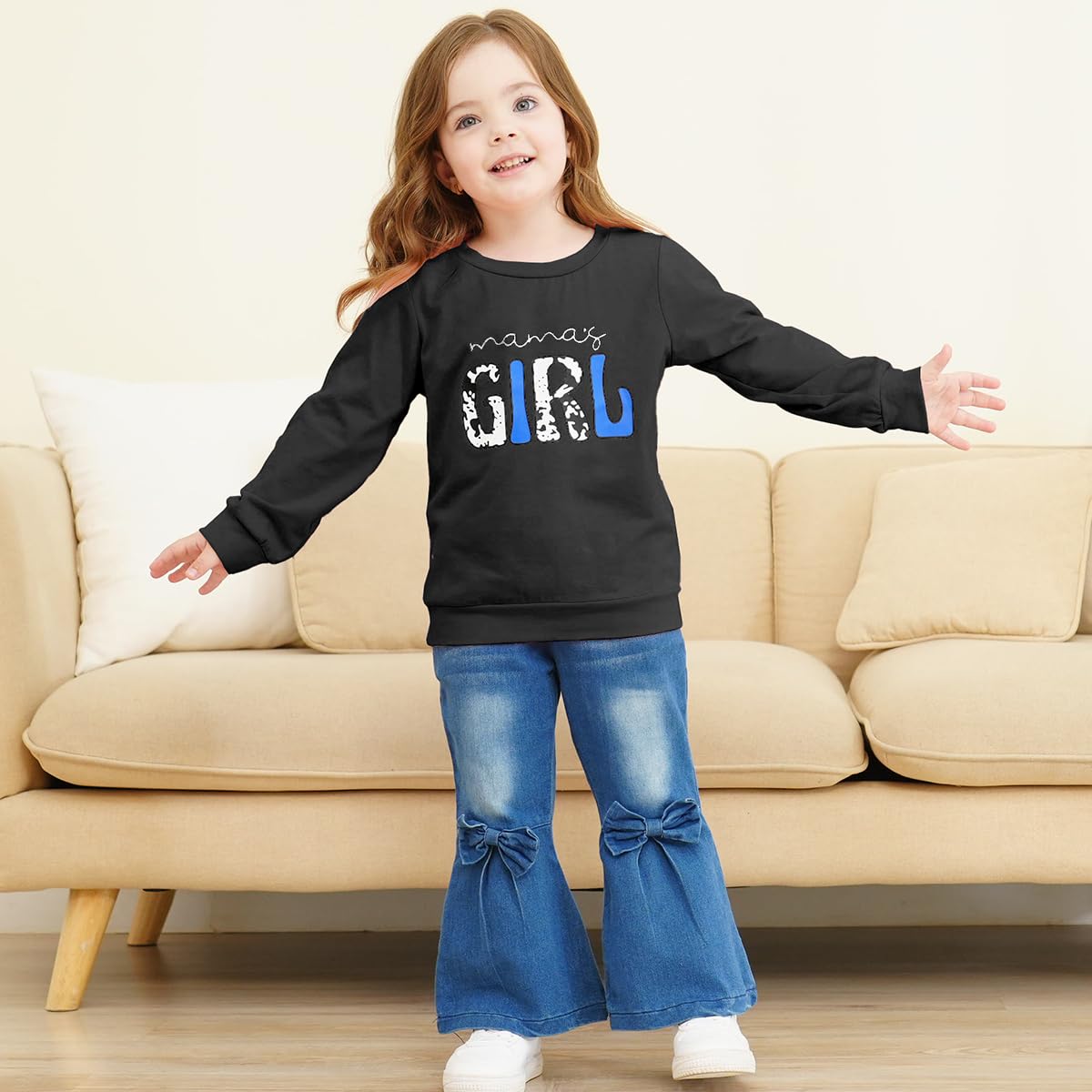 【Package included】1 x long-sleeved sweatshirt, 1 x flared jeans. can be worn as a 2Pcs set or alone, the best gift for your little one.
