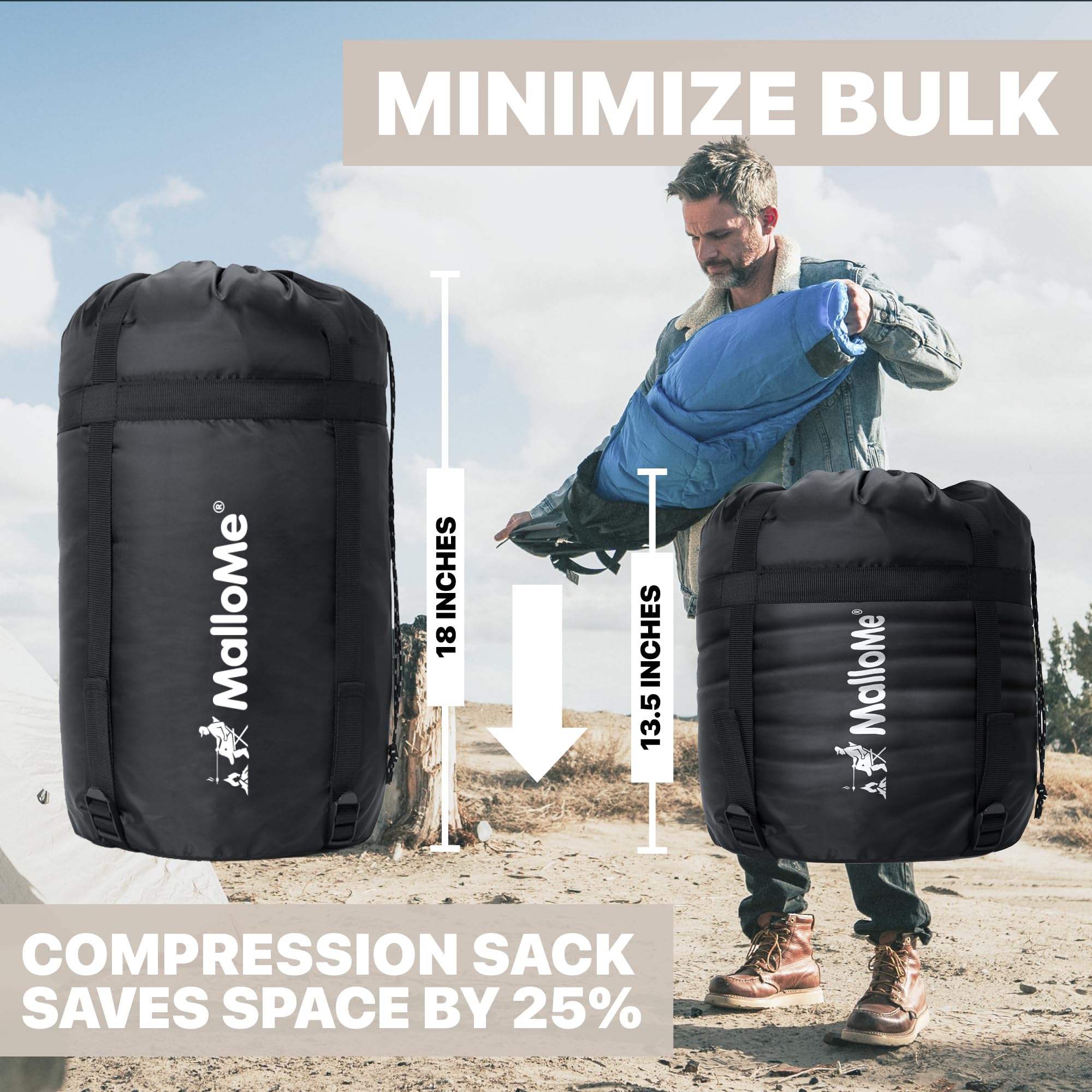CAMP IN COMFORT FOR ALL AGES - Bring the comfort of your own bed to the great outdoors. Our camping sleeping bags are engineered to guarantee a good night's sleep after a hard day of activities. No matter how tough the terrain or long the day, sleep well with MalloMe.
