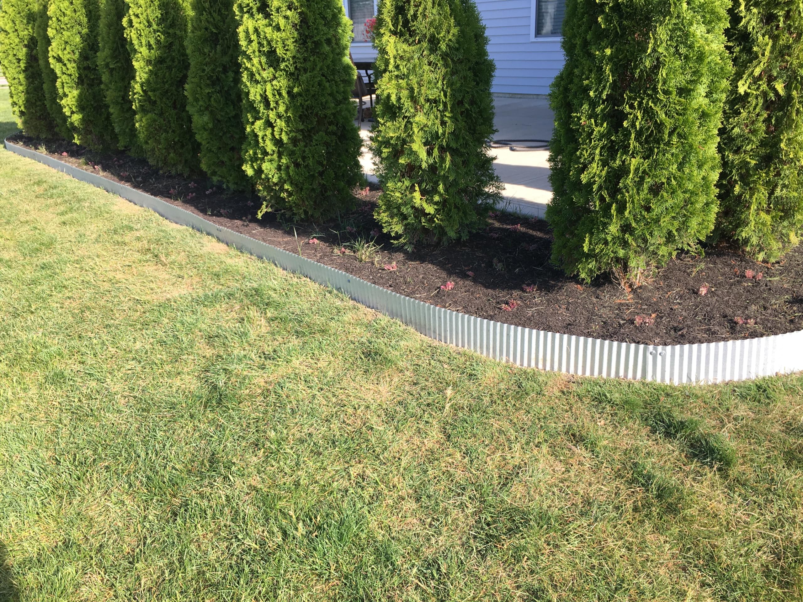 Hemmed edges provides a softer, safer product. **Real Metal - leather gloves required** Landscape edging available in 4 styles and 3 sizes. Price listed includes one piece of 10' garden edging unless noted as a 2-pack (which would be 2 10-foot rolls of edging). All-American company. 100% satisfaction guaranteed. Does not include screws or stakes.
