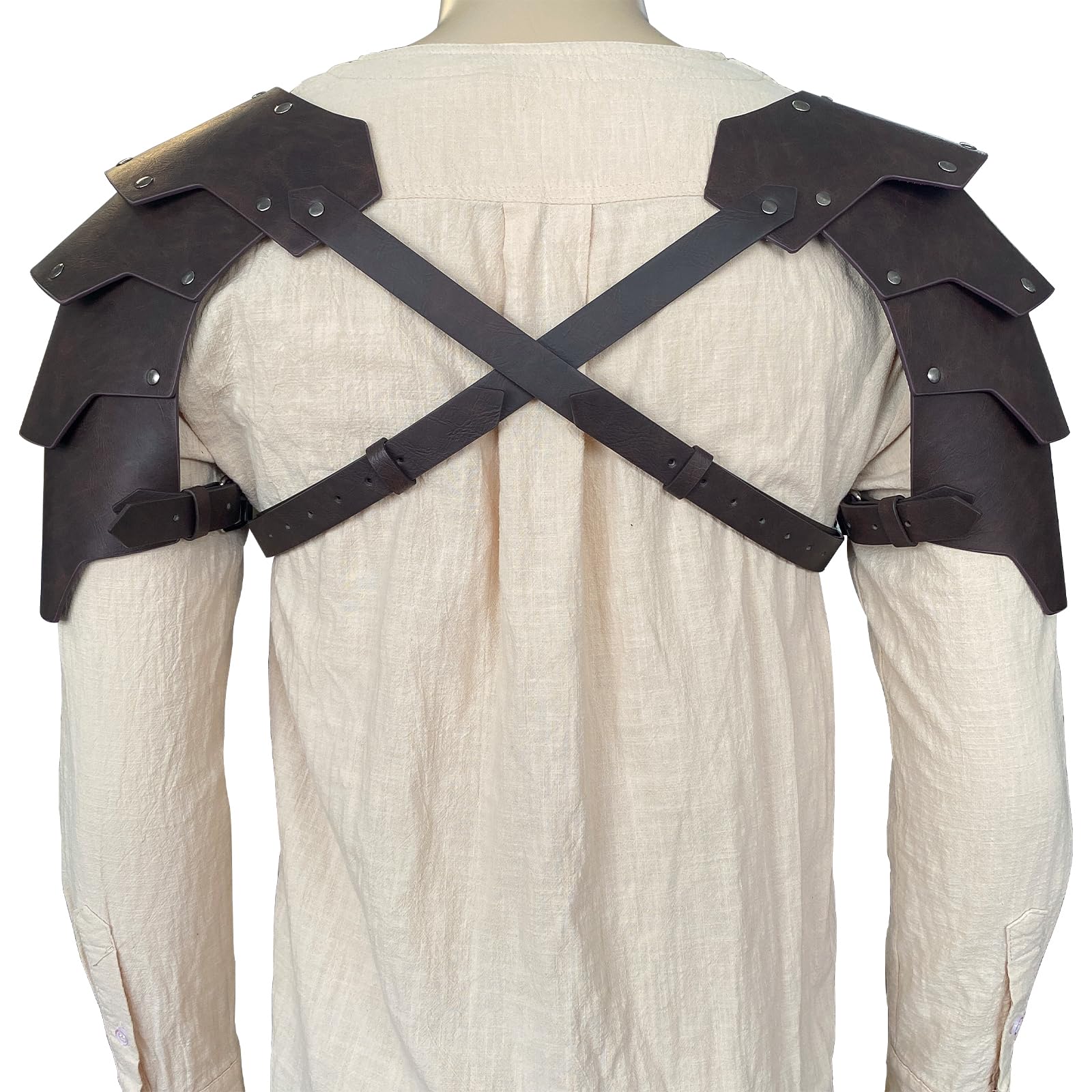 ADJUSTABLE- One size for all. The shoulder armor is equipped with adjustable straps, allowing it to comfortably fit various body sizes. This versatility ensures that anyone can enjoy the authentic medieval look. This style is suitable for adult men, maybe too large for ladies.