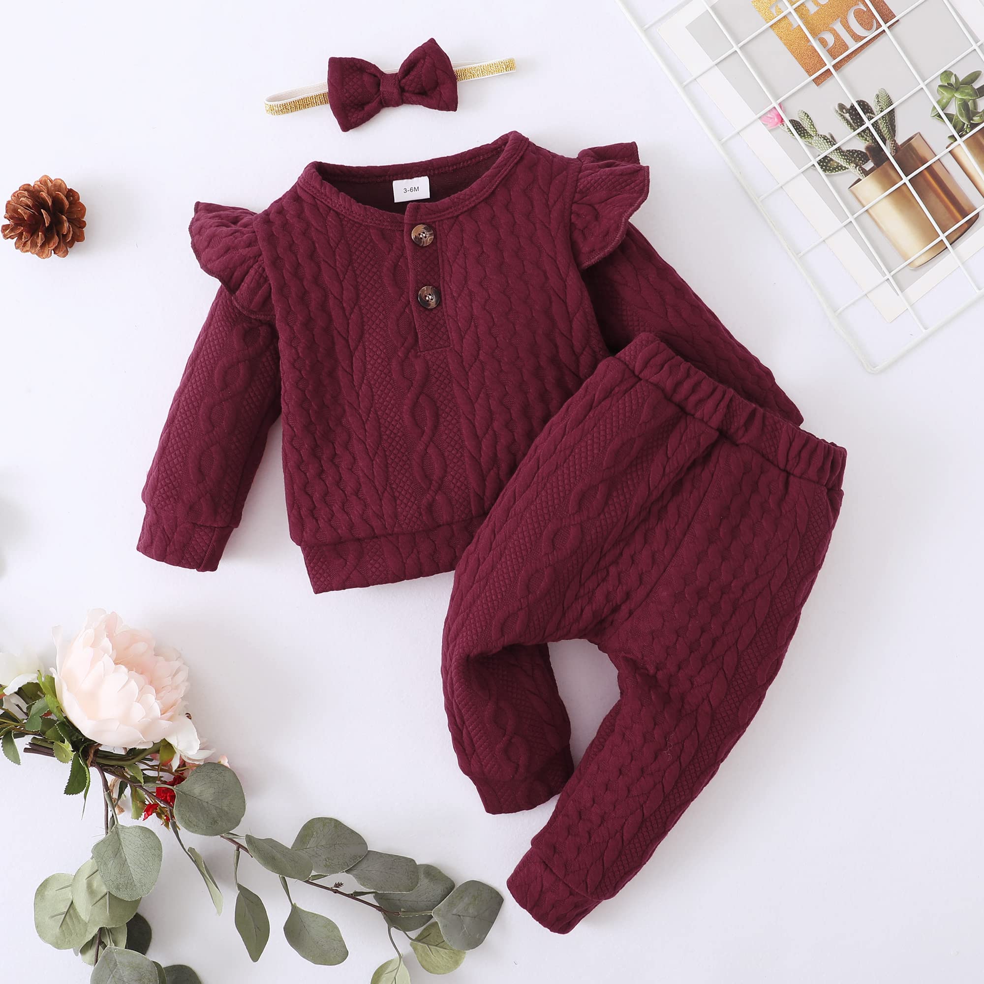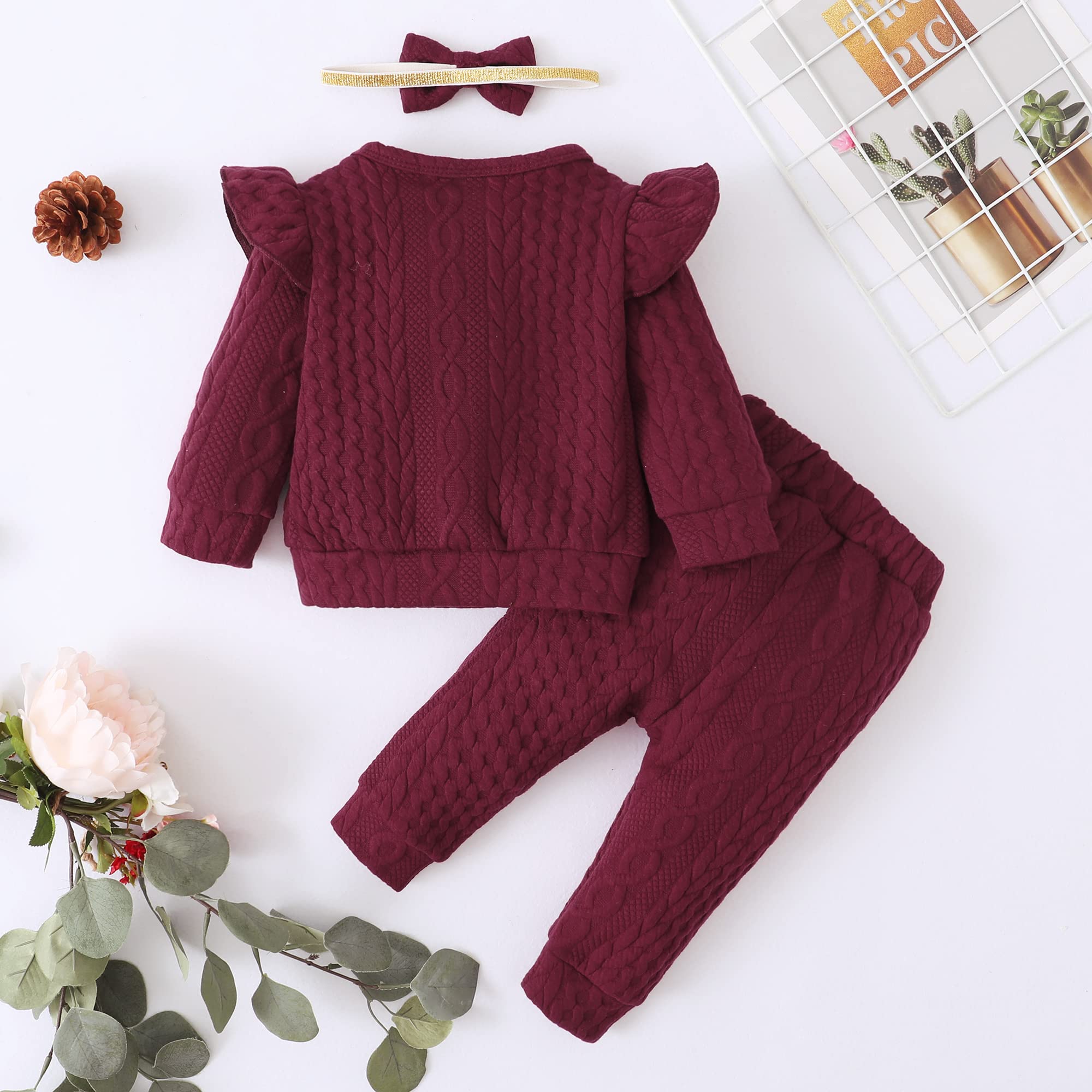 Baby Girl Fall Winter Outfits Package Included: long sleeve sweatshirts, sweatpant, bow decorated headband.