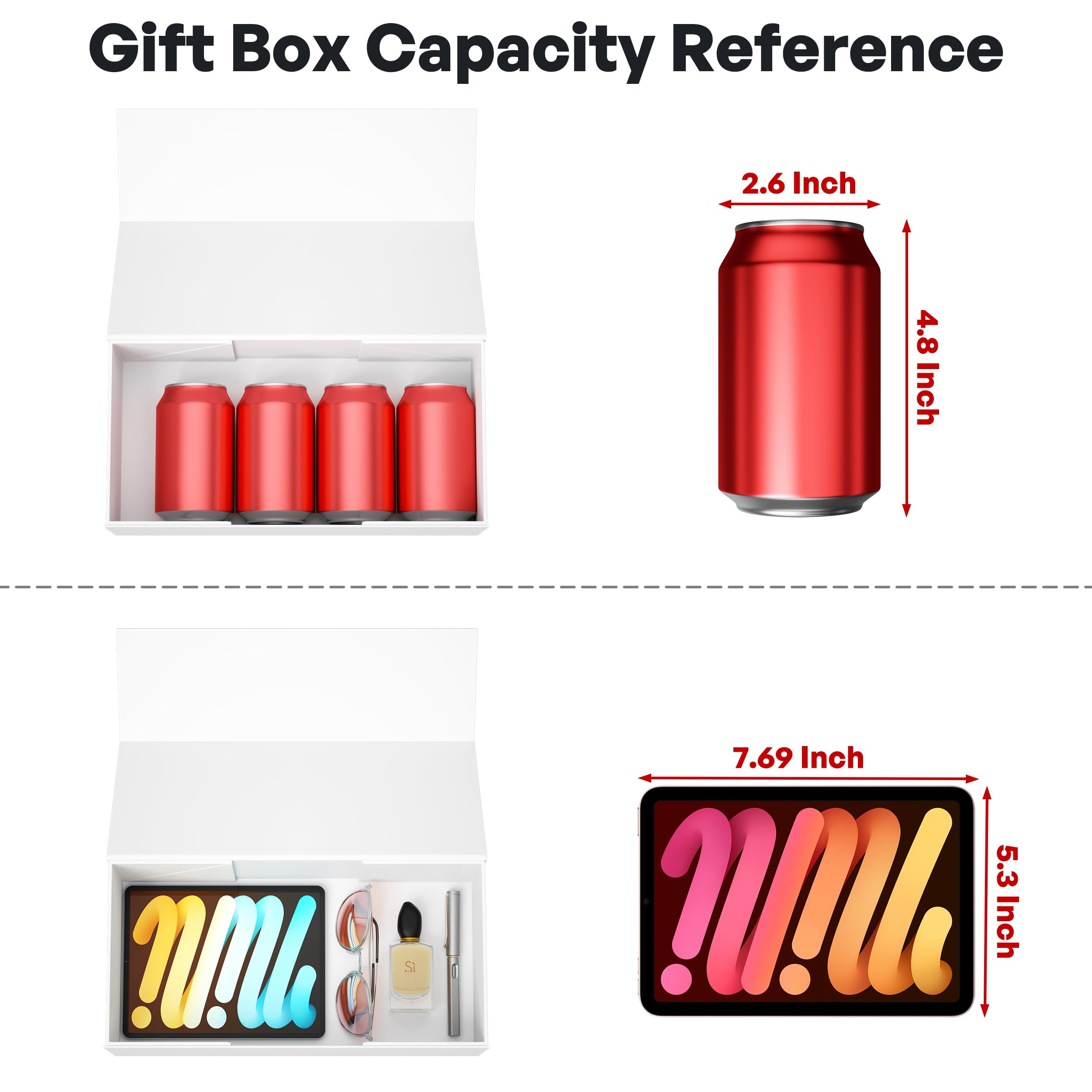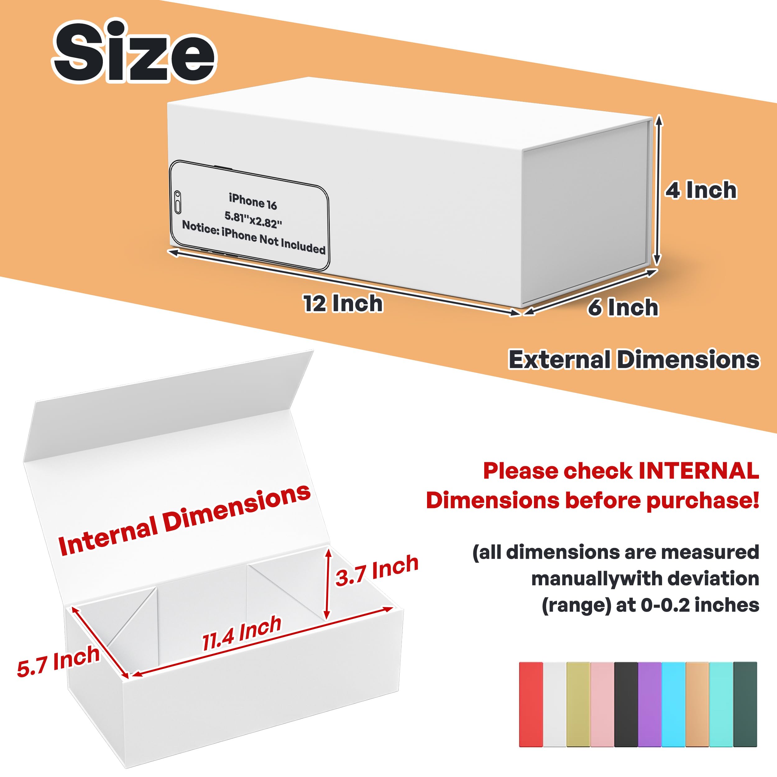 🎁SlZE - Gift boxes for presents External dimensiong 12x6x4 inches (Internaldimensions are 11.4x5.7x3.7 inches), Collapsible gift box can hold for iPad Mini 8.3 inch and Four cans of Coke, Electronic watches, sunglasses, belts, mobile phones, Lipstick, photos, toys, chocolates, candies, cosmetics, perfumes, jewelry, candles, cups, souvenirs orsmaller clothing accessories and more.(all dimensions are measured manuallywith deviation (range) at 0-0.2 inches)