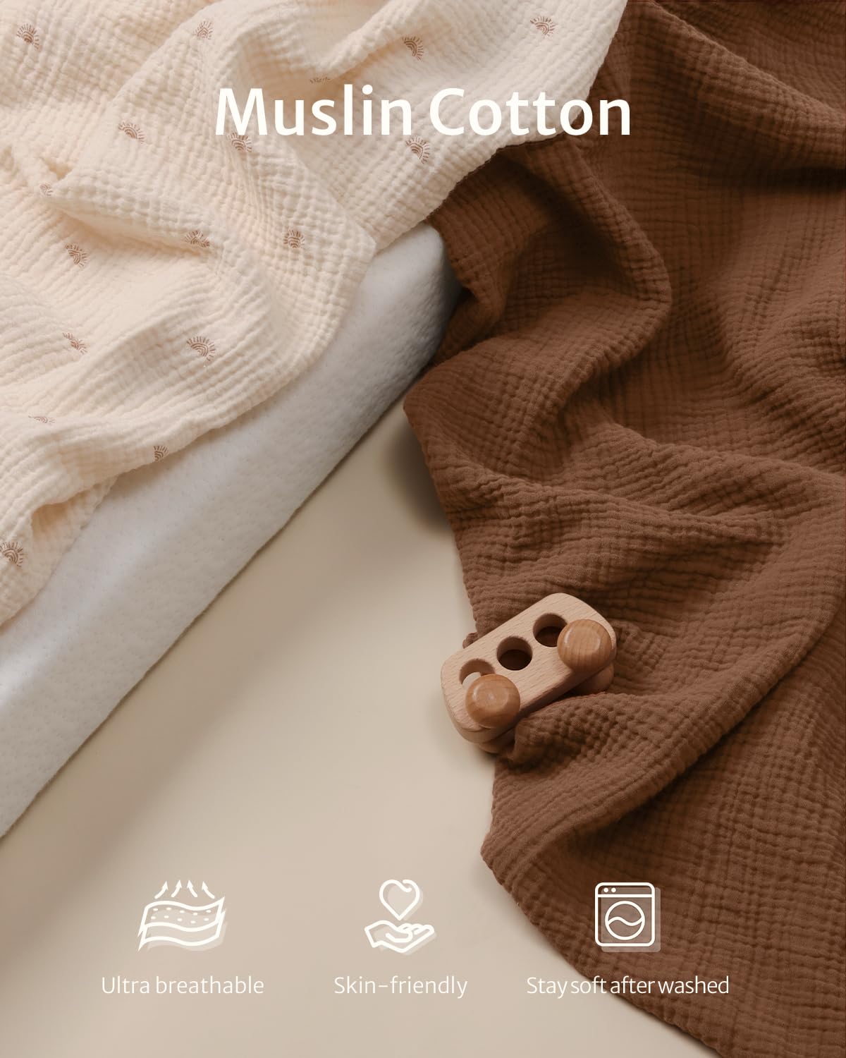 Muslin Cotton: Our changing pad covers girl are made of muslin cotton, with a smooth surface and comfortable touch,features a light drapability and rigidity, suitable for your baby's delicate skin