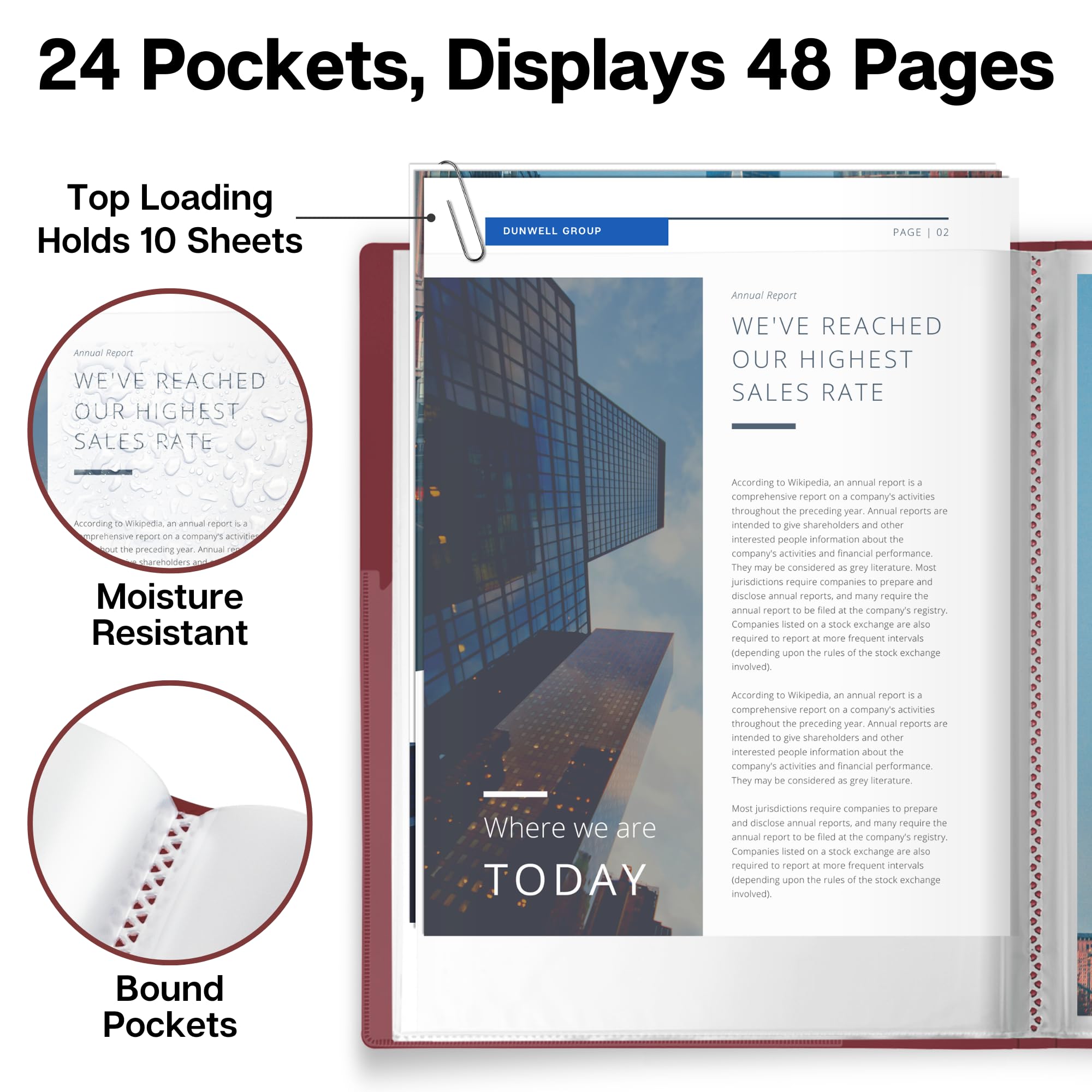 PRESENTATION READY: 24 bound sleeves display 48 pages, Perfect for client meetings, business presentations, job interviews. Make a great impression while protecting your documents.