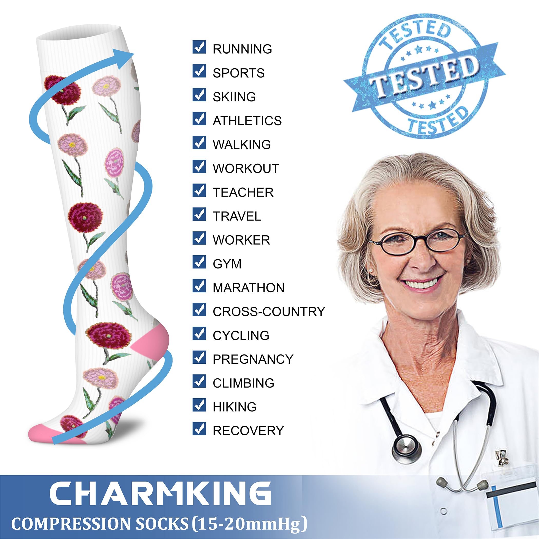 SUPPORT - Our compression socks (15-20 mmHg) come highly recommended by trainers. They are suitable for athletes, teachers, flight crew, receptionists, office workers, nurturing mothers, and the elderly. These socks are universally suitable for all types of work.