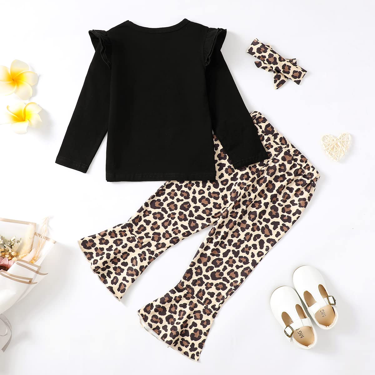 The design of this girl two year old birthday outfit flared pants is very stylish and cute,your baby will be very cute wearing it