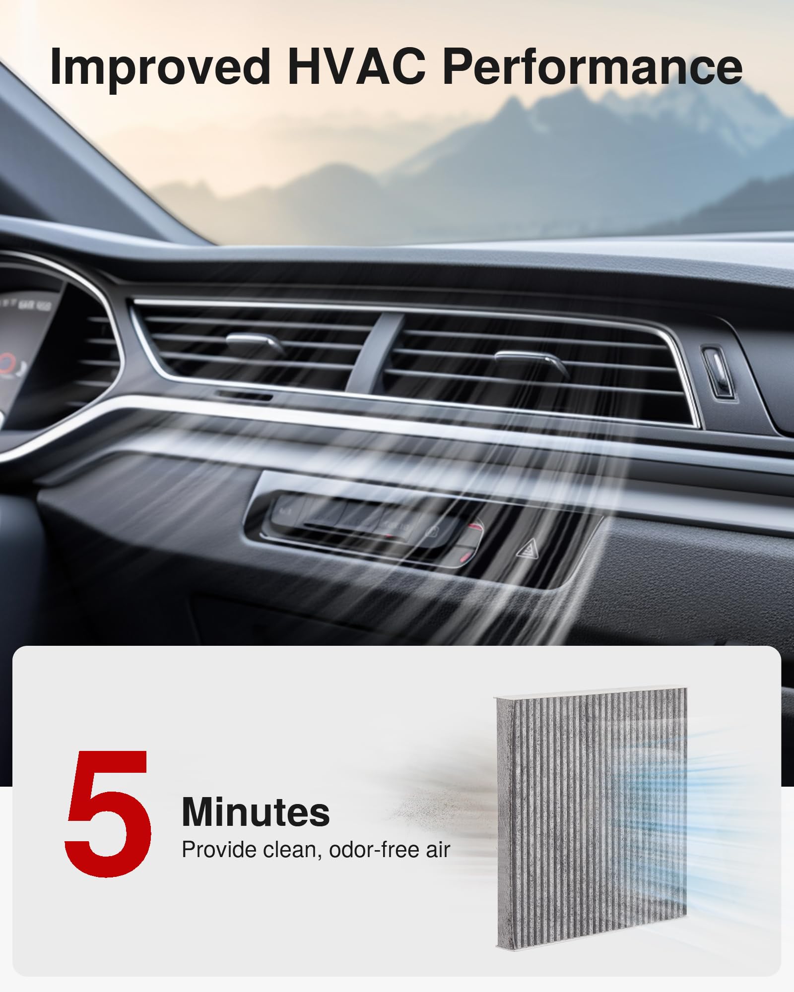 Improved HVAC Performance: To maintain optimal HVAC performance, the cabin air filter should be replaced annually or every 12,000 miles. However, for driving in heavily polluted areas or on dirt roads, more frequent replacements every 5,000 miles are advised. This not only enhances the efficiency of your vehicle's HVAC system but also guarantees a continuous supply of clean and fresh airflow, contributing to a more enjoyable driving experience.