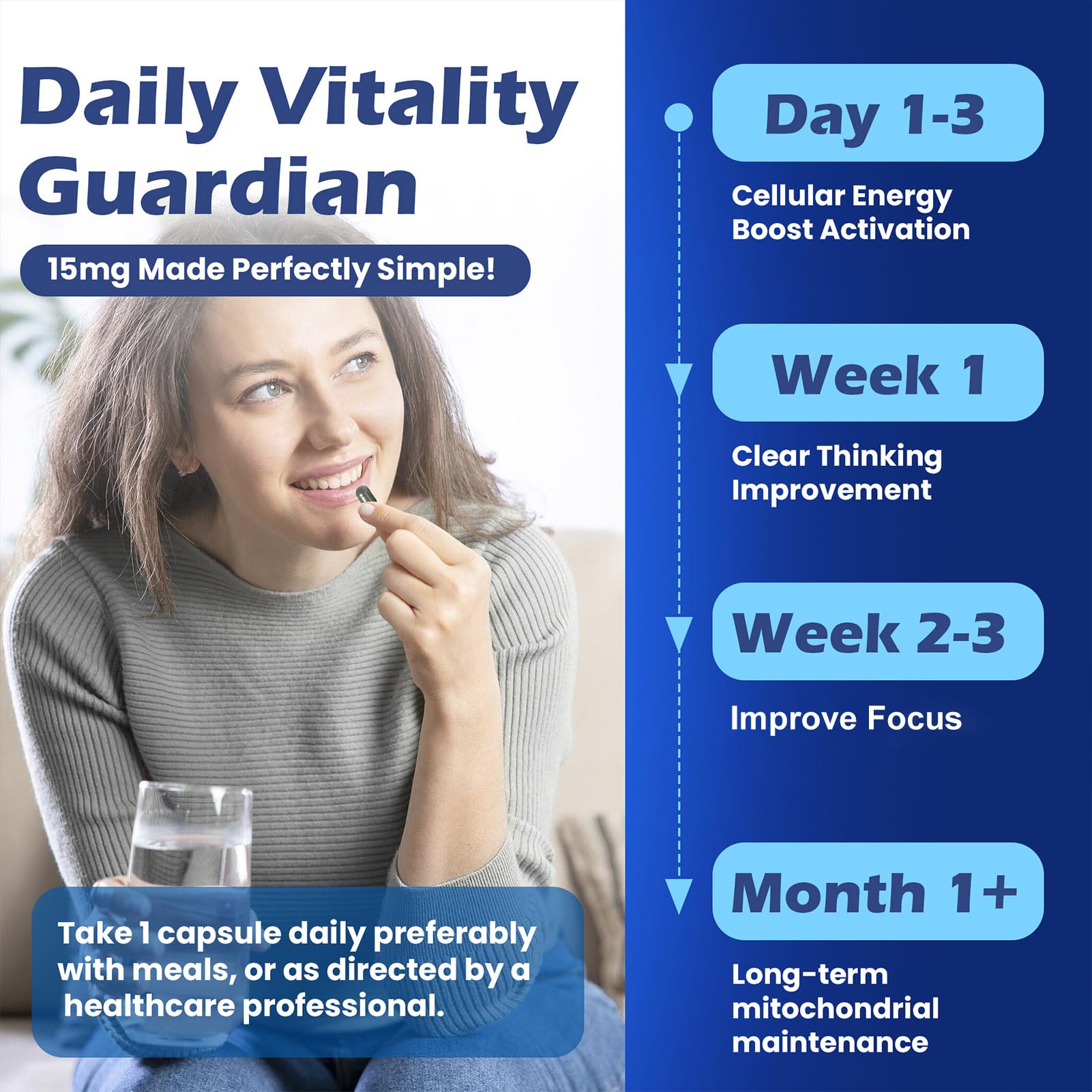 15mg Per Serving – Convenient Daily Use: Each serving provides 15mg of methylene blue in easy-to-take capsules—no measuring, no mess, just simple daily support.