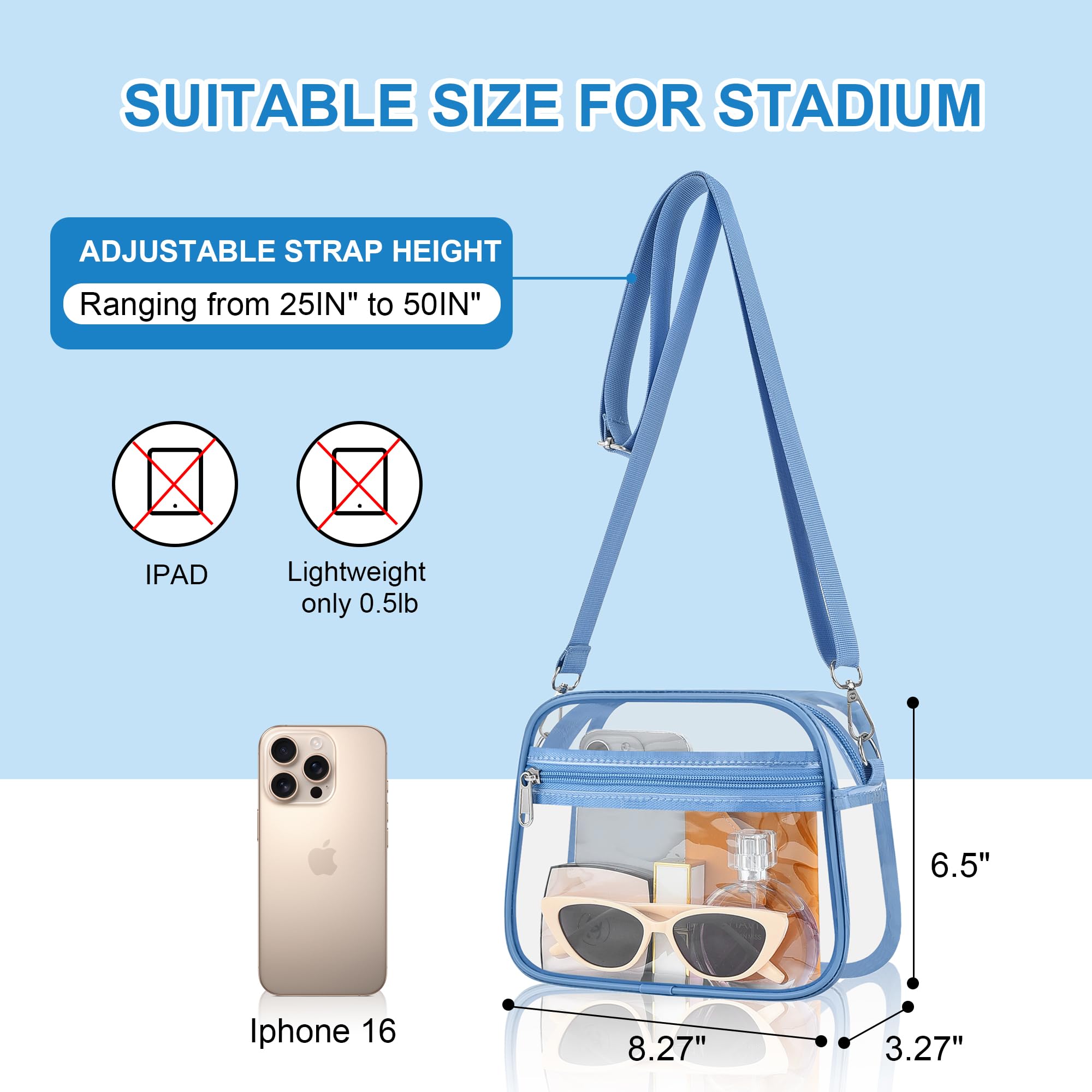 [Stadium Sports Fan Messenger Bag 12" x 6" x 12"] Measuring 6.5" H × 8.7" L × 3.4" W, this bag meets the standard clear bag for stadium events policy (under 12"×12"×6"), making it ideal for stadiums, concerts, and sporting events