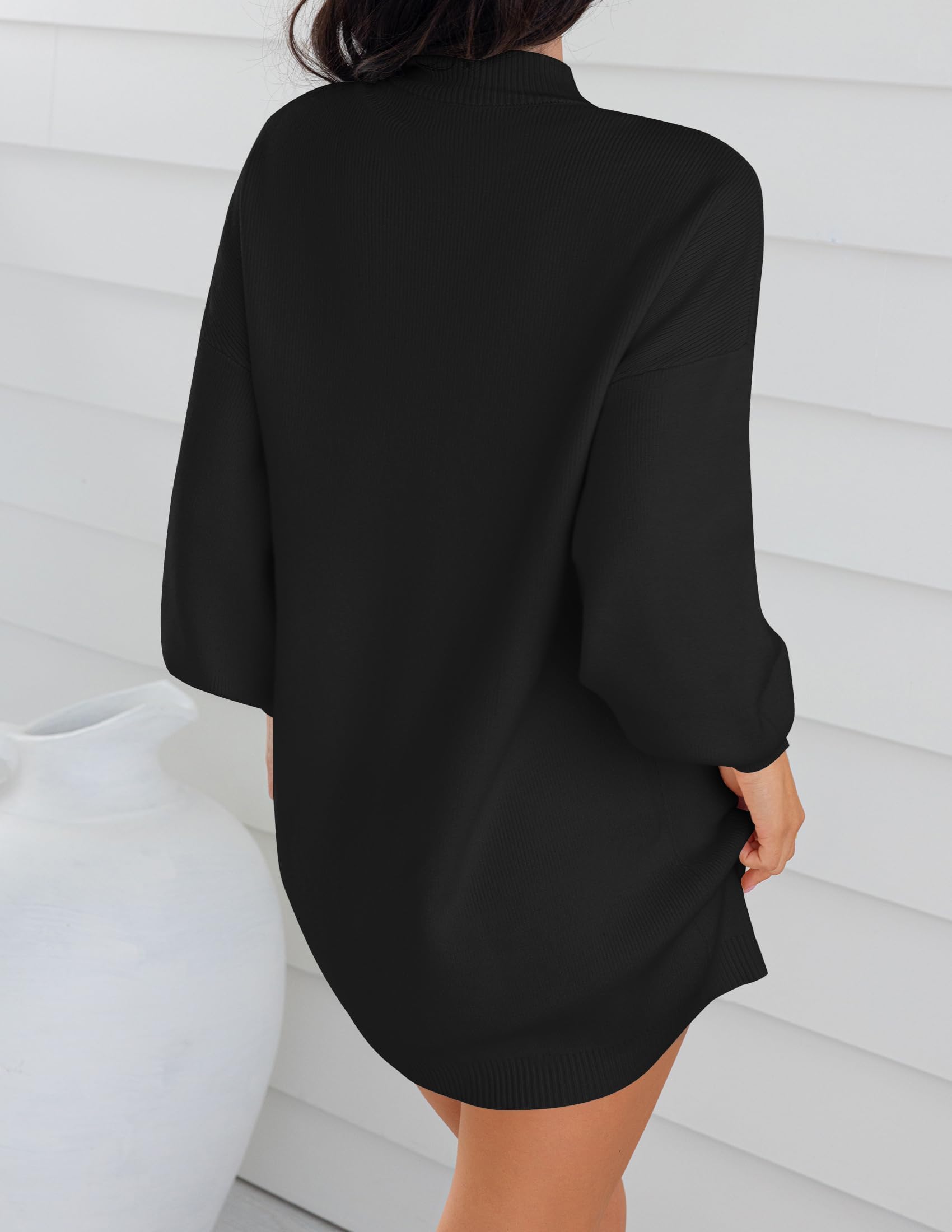Sweater dresses for women 2025, mini dresses for women, fall sweater dress, lantern long sleeve dress, ribbed knit dress, mock neck, loose fit, classic solid color, above knee length, slouchy and baggy style, maternity dress, winter dress, cocktail party dress