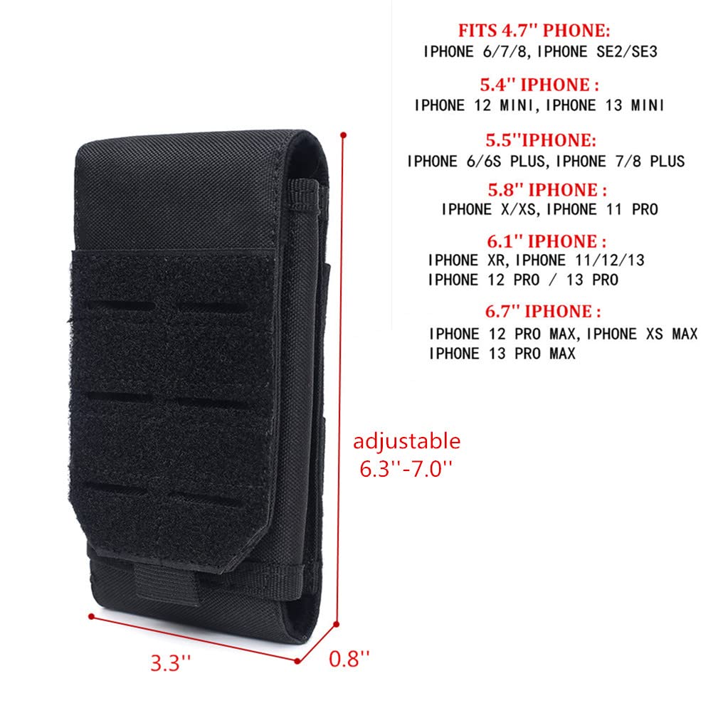 Heyqie Tactical Molle Waist Mobile Phone Waist Bag ➤ Material:1000D Nylon Heavy Duty Fabric and soft fleece material inner lining. lightweight durable, Wear-resistant, Tear-resistant ➤ Color: Black ➤ Size (LWH):6.3*3.3*0.8 inches (Cover adjustable height from 6.3 - 7.0 inches). ➤ Compatible Cellphone Model: Apple iPhone 13 Pro Max,iPhone 13 Pro,iPhone 13,13 Mini,iPhone 12 Pro Max,iPhone 12 Pro,iPhone 12,12 mini,iPhone 11 Pro Max,iPhone 11,11 Pro,iPhone 10,iPhone X,XR,XS,iPhone XS Max,iPhone 8 Plus,8,7 Plus,7 iPhone 6,6s,6s Plus,iPhone SE,SE2,SE3 Samsung galaxy s22/ s21/ s10/ s20 fe 5g/ s20/ s22 plus/ s10 plus/ s10e/s21 fe/s9/s8/ s9 plus/s20 plus/s21 plus/s22+/s7/s6 lite/s8 plus/s10+/s5/s7 edge/S6/s7 plus/S21 Ultra,samsung z flip 3/ Z Fold 3 5G/z fold 2;Samsung galaxy a13 5g/ a12/ a32 5g/ a13 5g/ a52 5g/a02s/a03s/a32/a71 5g/a10e/a42 5g/a20/a51/a21/a72/a53/a50/a52s/a01/a20/a02/a10/a11 /a7/a32/a70;note 20/note 10 plus/note 9 /note 10/note 8/j7. Sony Xperia xperia 1 iii 3 OnePlus Nord N200/9 Pro/8/8T 5G/7 Pro7T/Nord 2/Nord N100 Google Pixel 6/6 pro,5,4a,3,5a,3 XL,2 XL,2,4 XL, Motorola Moto G Stylus 5G,G Pure,G Power (2021) ,G Stylus 2021,G Play 2021 ,E,G Power 2022,G Stylus Case (2020),E6 ,Z4,G7,G200,G7 Plus,Z3,G7 Play, G fast ,Razr 5G,Z3 Play,G9 Power 2021, X4, Huawei Mate 20 Lite/40 Pro 5G/20 Pro /P50 Pro/ P30 Pro/P40 Pro/P30 Lite /P30 Lite /P40/P40 Lite OR other phone models of around 4.7-6.7 inch big screen Also compatible with portable hard disk, external battery and portable device like PSP or NDS Perfect for camping/hiking/other outdoor use, it can hang on the belt, Able it to attached to any molle webbing vest, bag, duty belt or backpack ➤ Qty:1 Pack Tactical Waist Bag + 1 Pack US Flag Patch Please contact us if you have any questions.