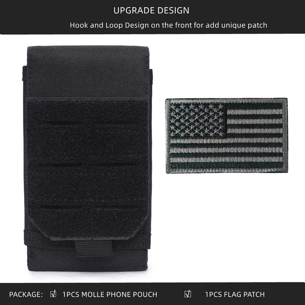 ➤UPGRADE DESIGN: Hook and Loop Design on the front for add unique patch, Can paste a variety of personality Patches, . Package Included: 1 pack Molle Phone Pouch + 1 pack US Flag Patch.