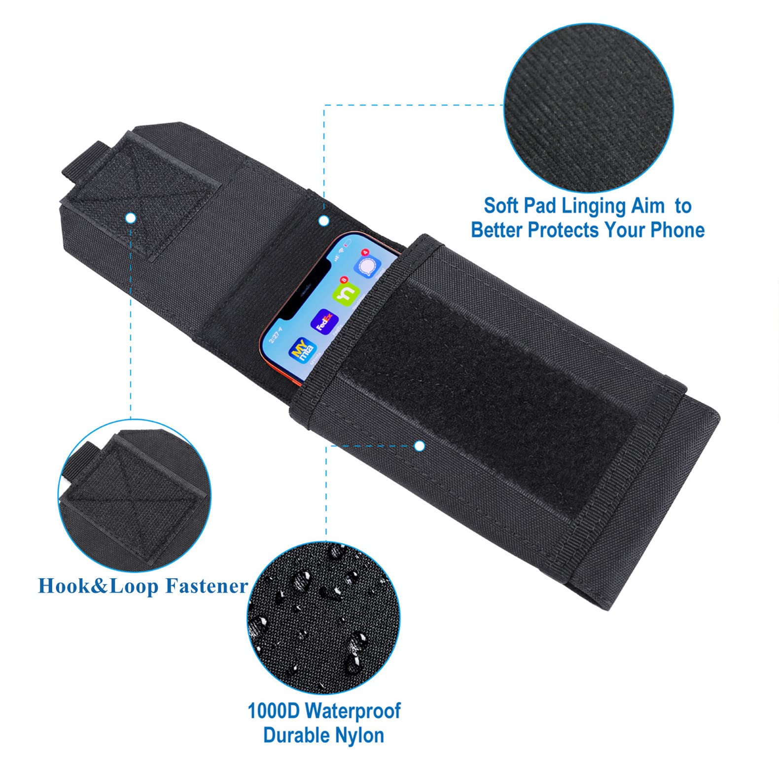 ➤DURABLE MATERIAL:The molle cell phone pouches is made of durable premium 1000D nylon fabric, lightweight durable, Wear-resistant, Tear-resistant ; The lining is soft, with the Shockproof soft padded interior lining to better protects your phone in any outdoor condition.