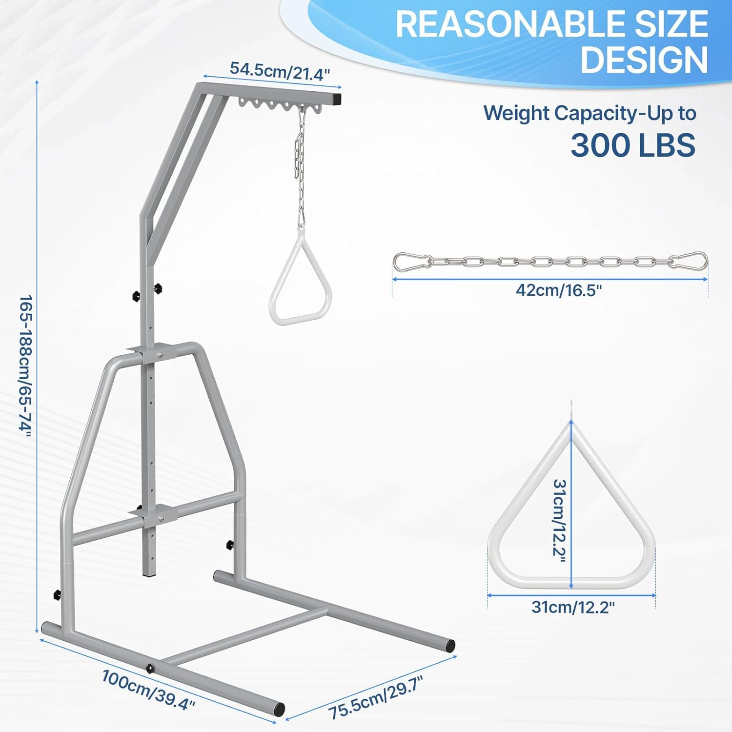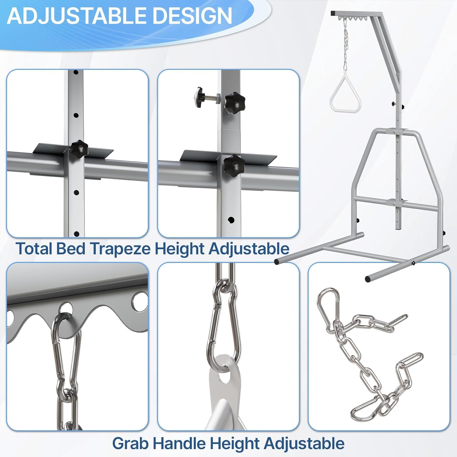 Adjustable Height from 65" to 74": This freestanding trapeze bar for bed mobility easily adjusts to accommodate various bed heights, providing comfortable and reliable support for users