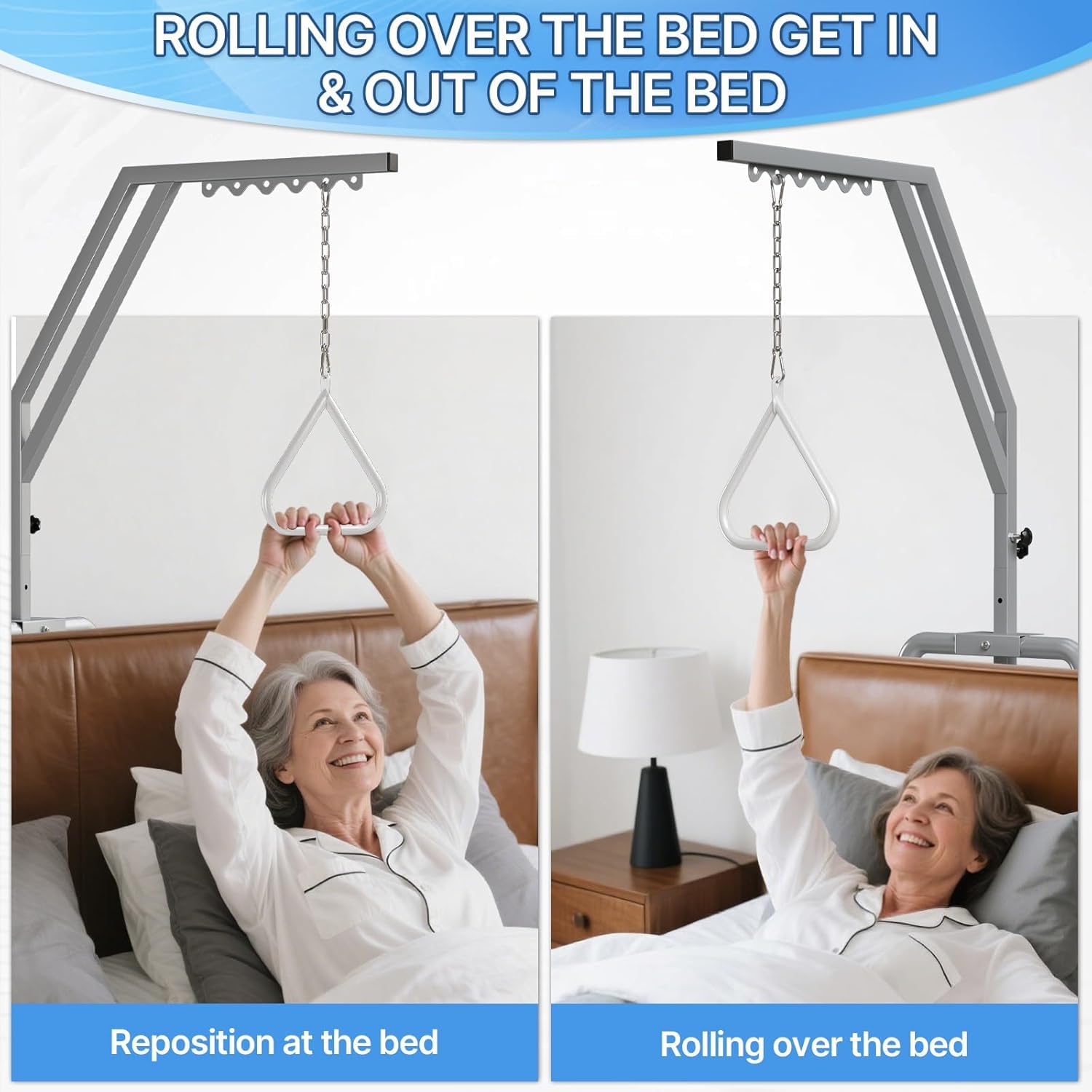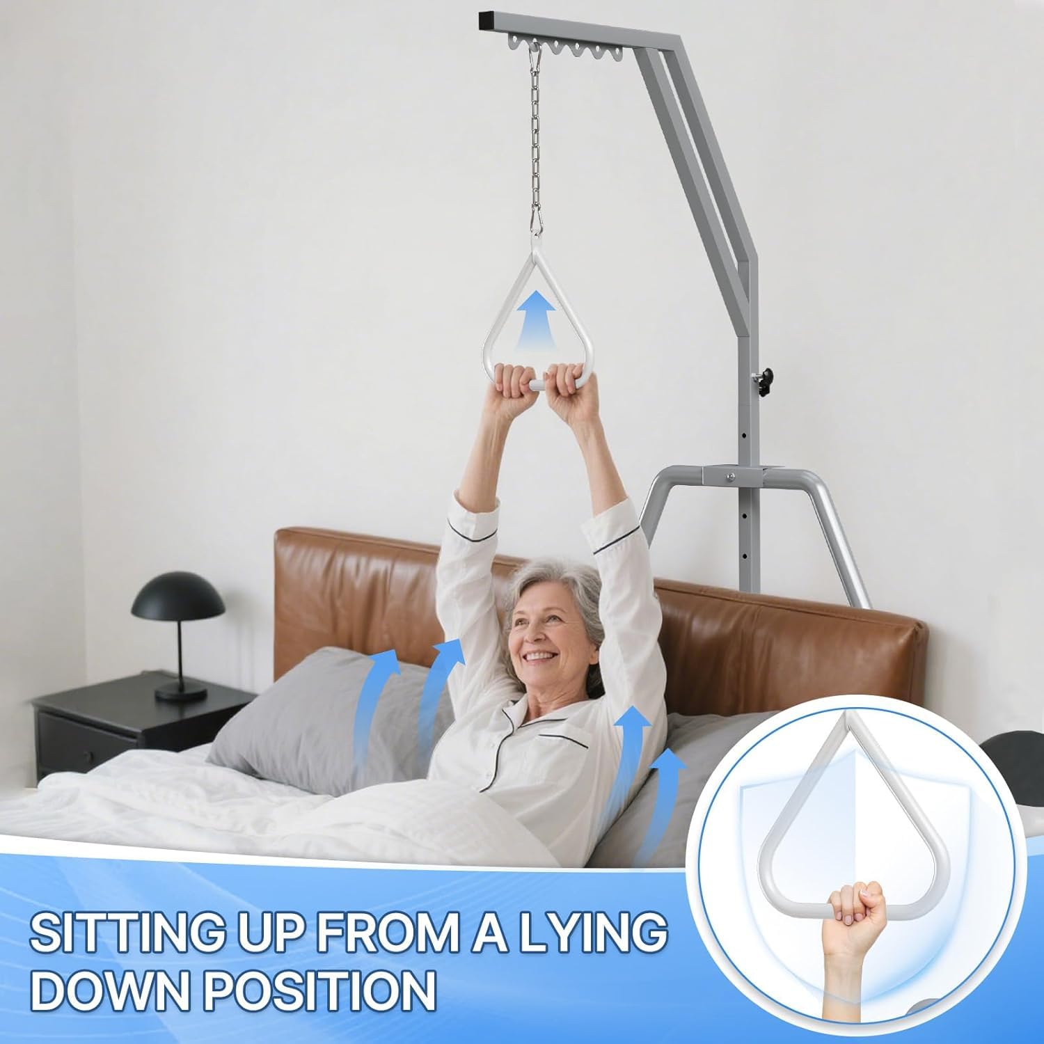 Comfortable Triangular Grip Handle: The ergonomic overhead handle provides a firm and comfortable grip, helping users safely pull themselves up or adjust their position while in bed