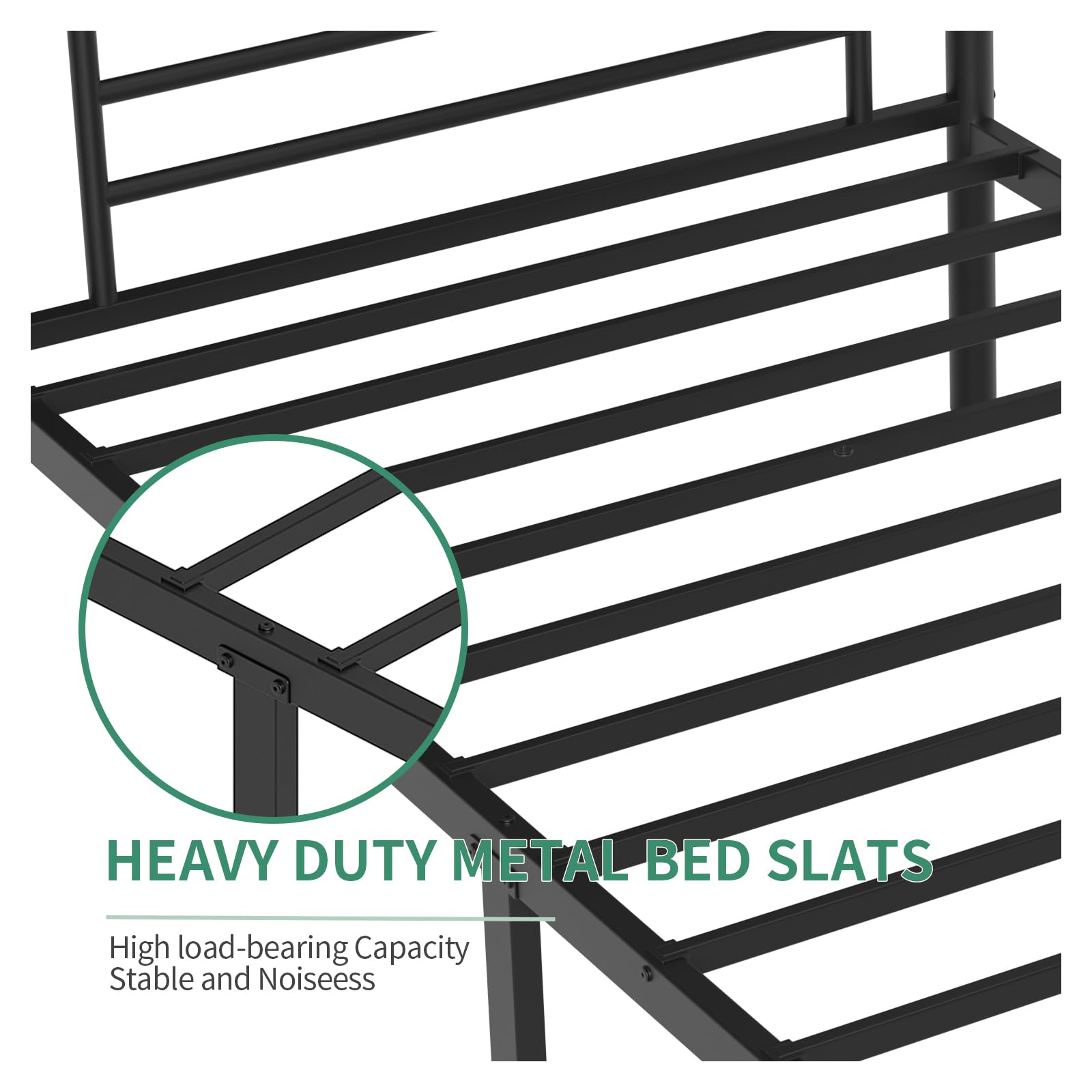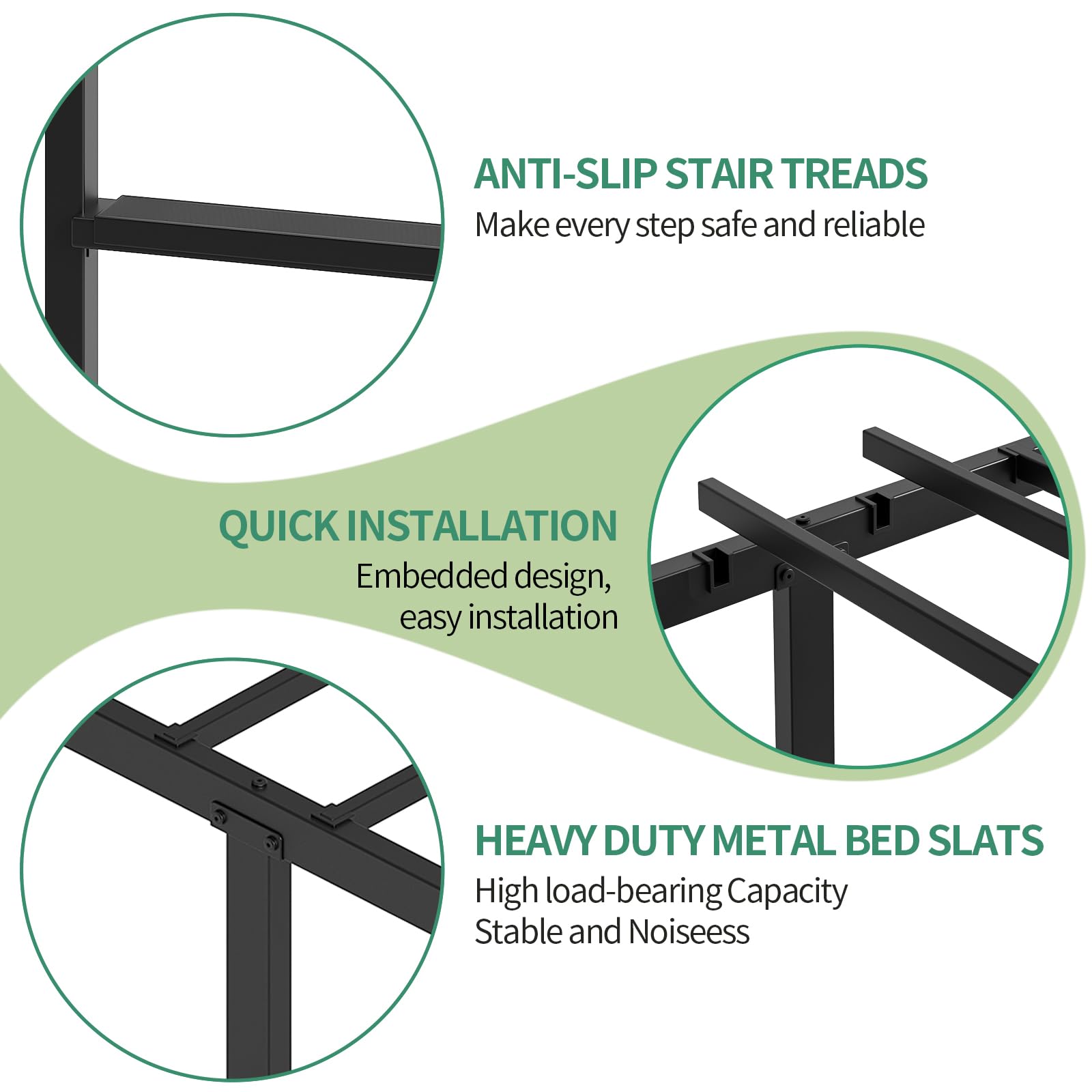 【Safe and Stable Bunk Bed Design】Equipped with 13-inch high guardrails and secure twin over twin bunk bed ladders,our metal bunk beds ensure maximum safety for kids and adults.The sturdy bunk bed frame prevents accidental falls,making it ideal for children’s bunk beds,teen bunk beds,or adult bunk beds