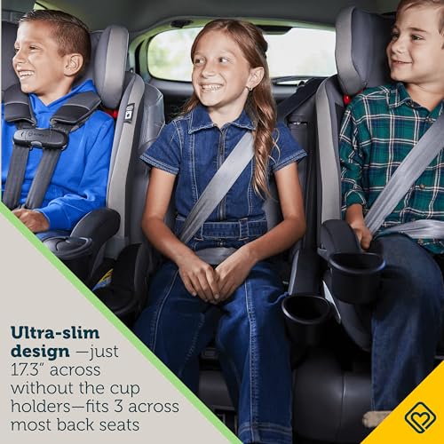 FITS 3 ACROSS: As a slim car seat, it can fit up to 3 across a back seat, making it an ideal travel car seat for toddlers.