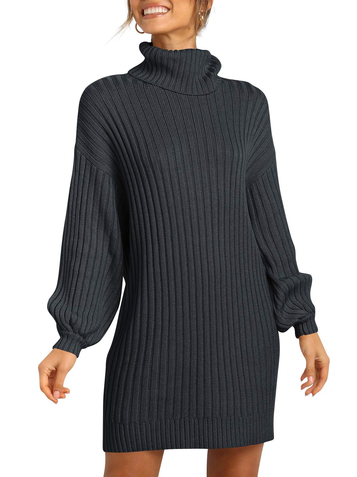 Features - Women's sweater dress, turtleneck neck, batwing long sleeve, knitted. This women's oversized dresses perfect for daily wear outdoor wearing, dating, casual, office; Great with high heels, boots etc