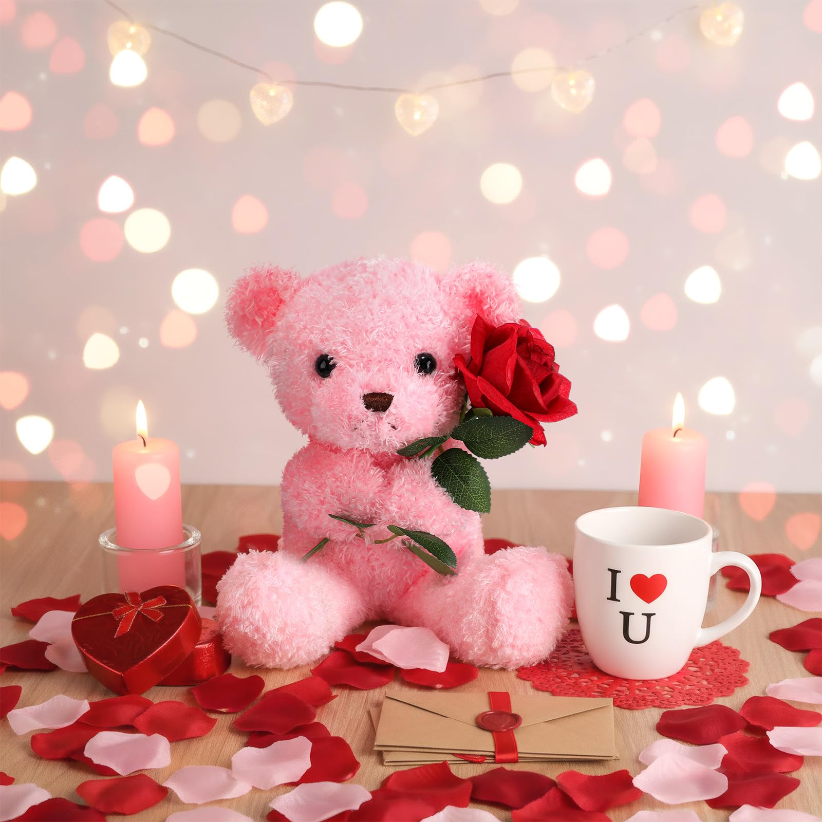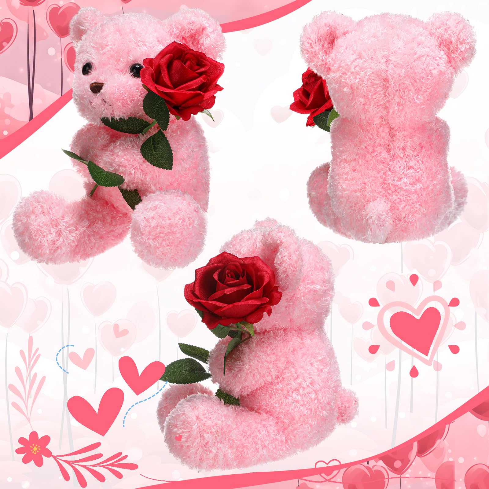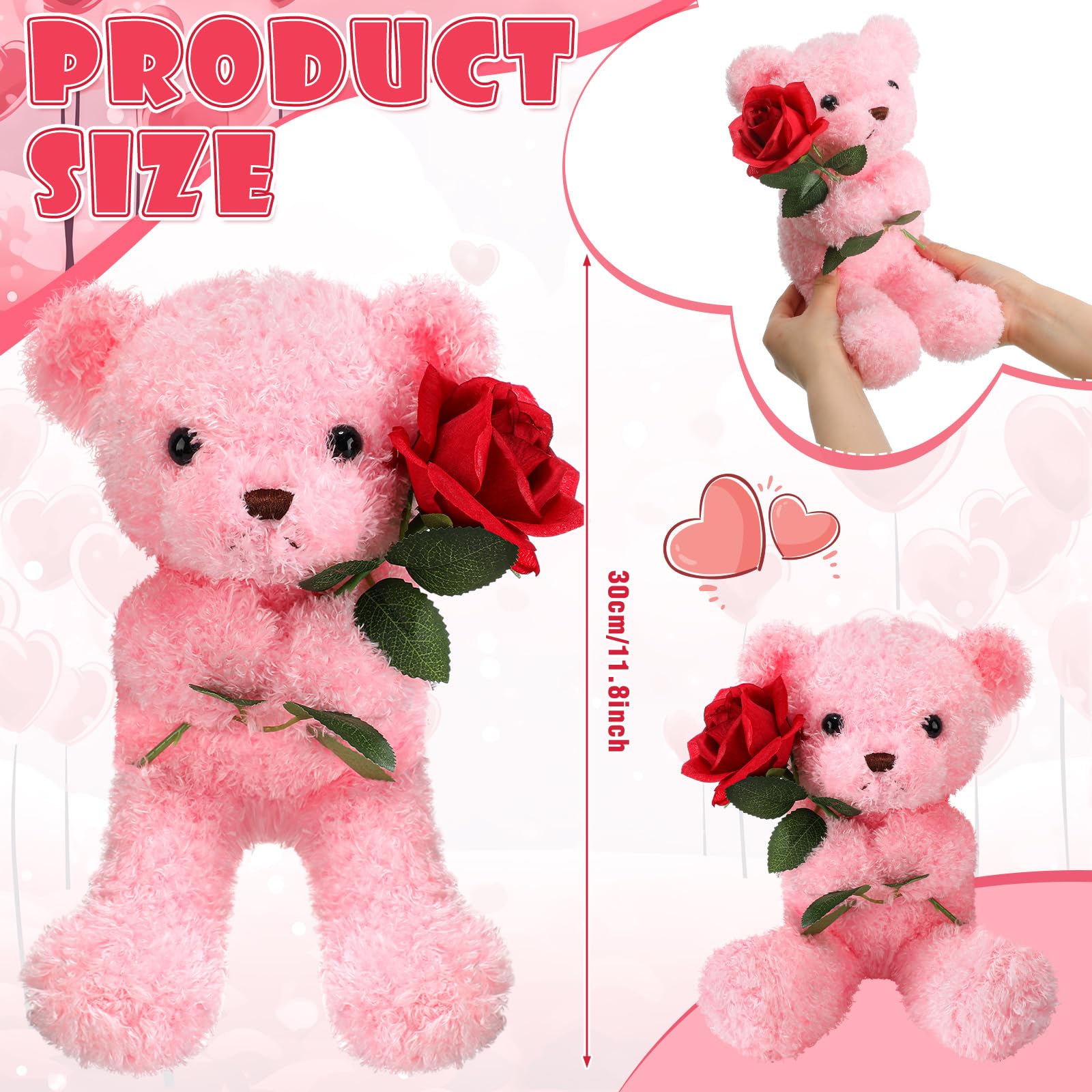 Cute Design: this Valentines bear features a quiet and cute bear holding a rose, this cute plush has elegant images, bright eyes and looks more adorable, which will be your couple or your nice plush