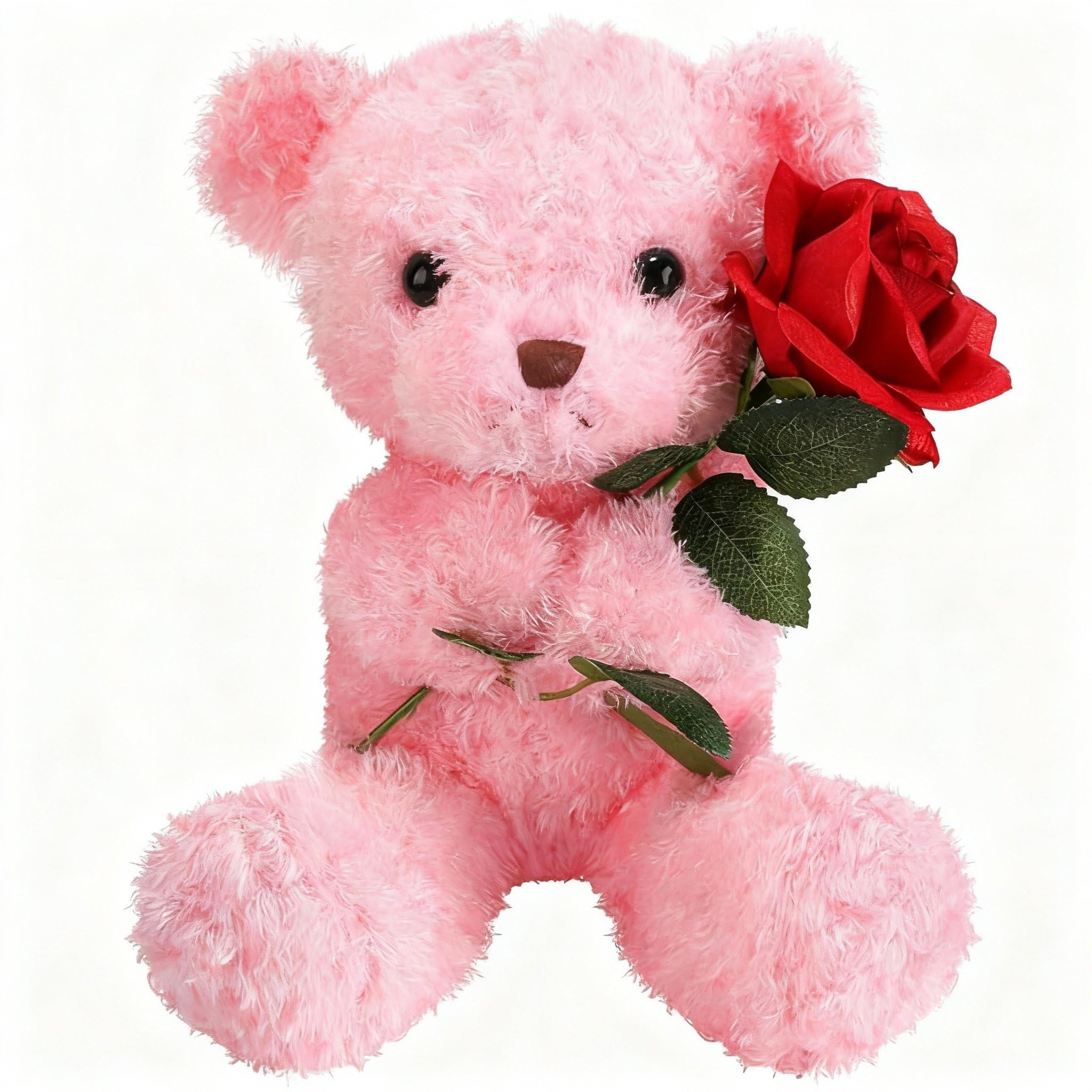 Civaner Valentine Bear Stuffed Animal Gift with Rose Funny Cute Bear Stuffed Animal Plush Gift for Valentine Mother Birthday Wedding Christmas, 11.8 Inches(Pink)