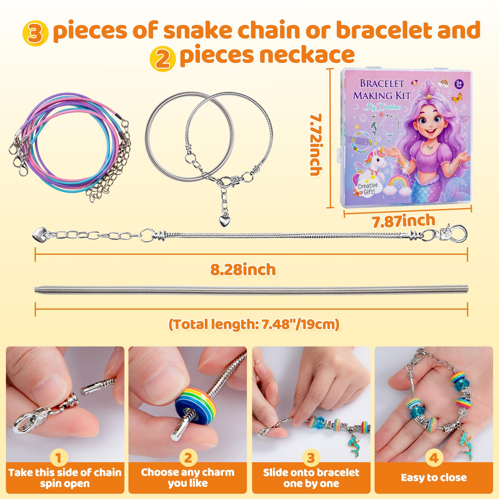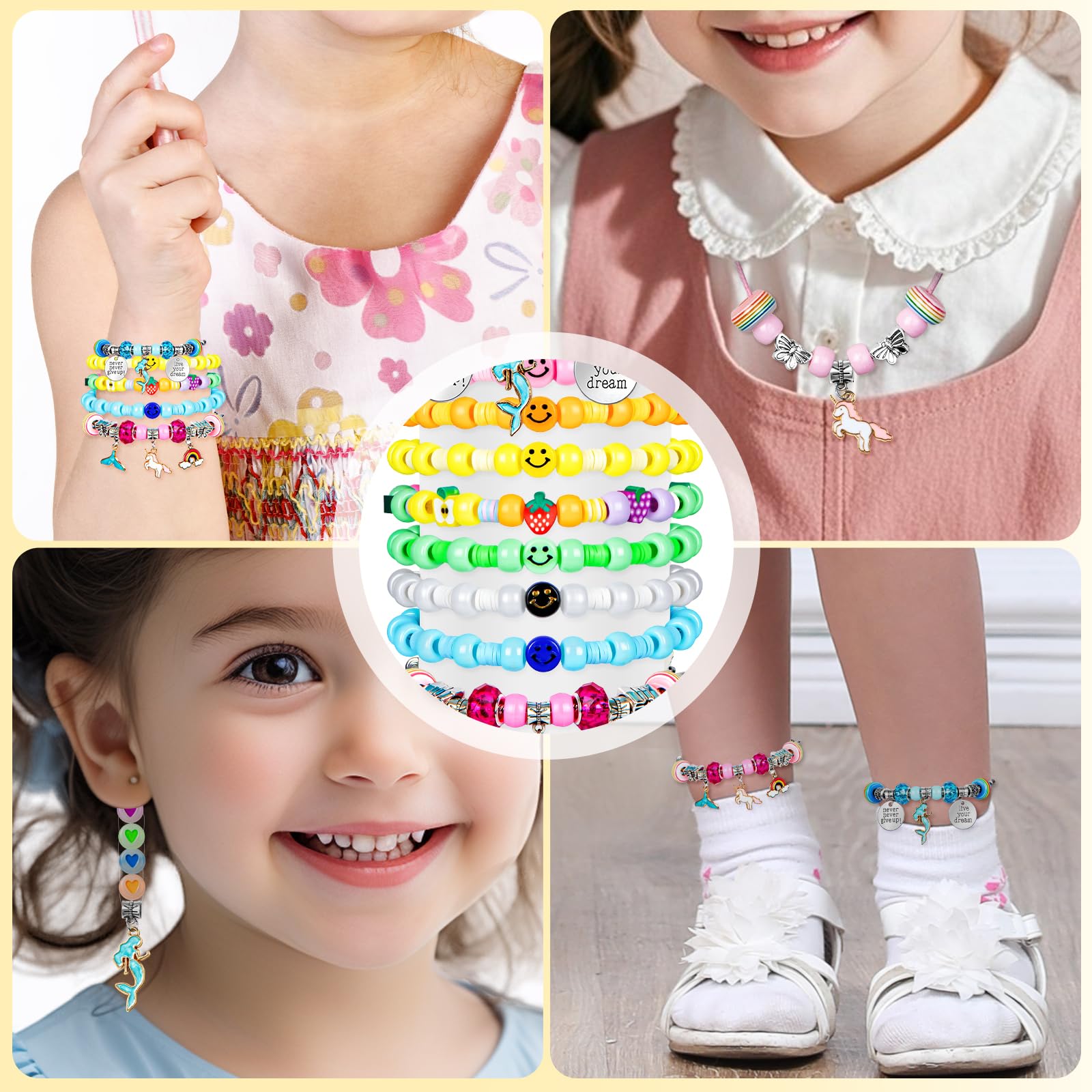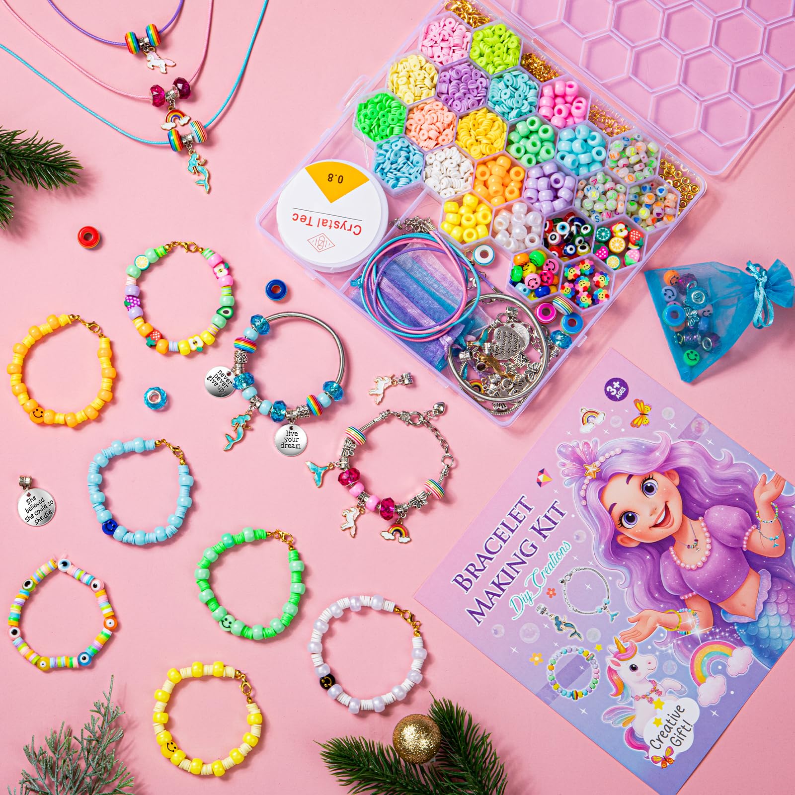 Cute Unicorn & Mermaid Charms – Kids can design their own unique bracelets and necklaces with magical pendants, rainbow charms, resin beads, and metal beads.