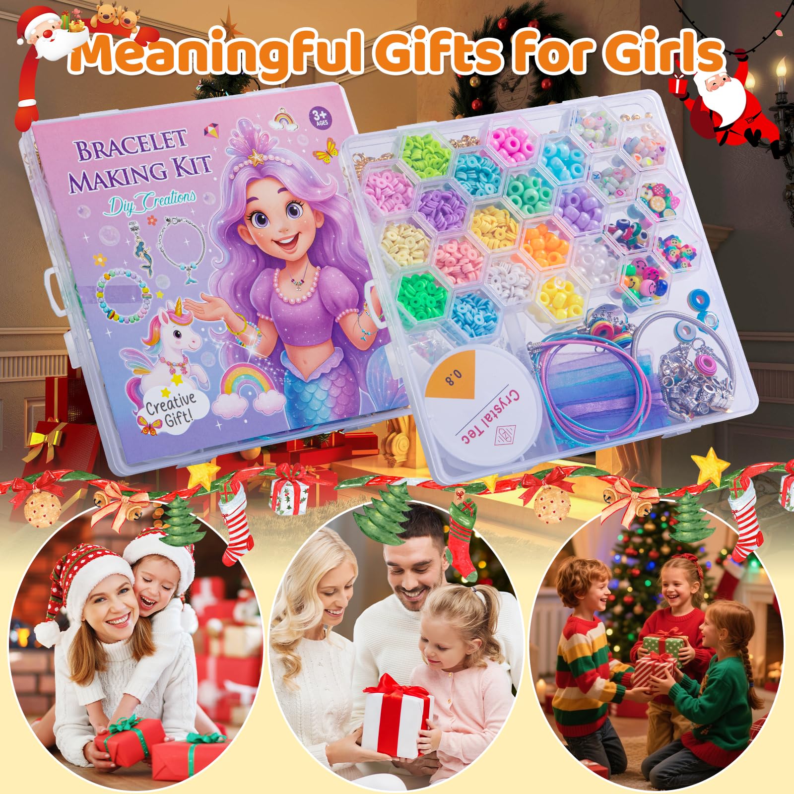 Encourage imagination and creativity with the Taybonds Bracelet Making Kit for Girls (Age 4-12)! This complete jewelry-making set includes 2200+ colorful beads and charms, such as polymer clay beads, alphabet beads, rainbow charms, unicorns, mermaids, smiley faces, fruit, and more. The unique hexagon organizer box keeps everything tidy, while the included elastic cord, bracelets, and wax rope necklaces make it easy for kids to design and wear their creations. A wonderful gift for girls ages 4-6, 6-8, 8-12, perfect for birthdays, Christmas, or fun DIY crafting with friends!