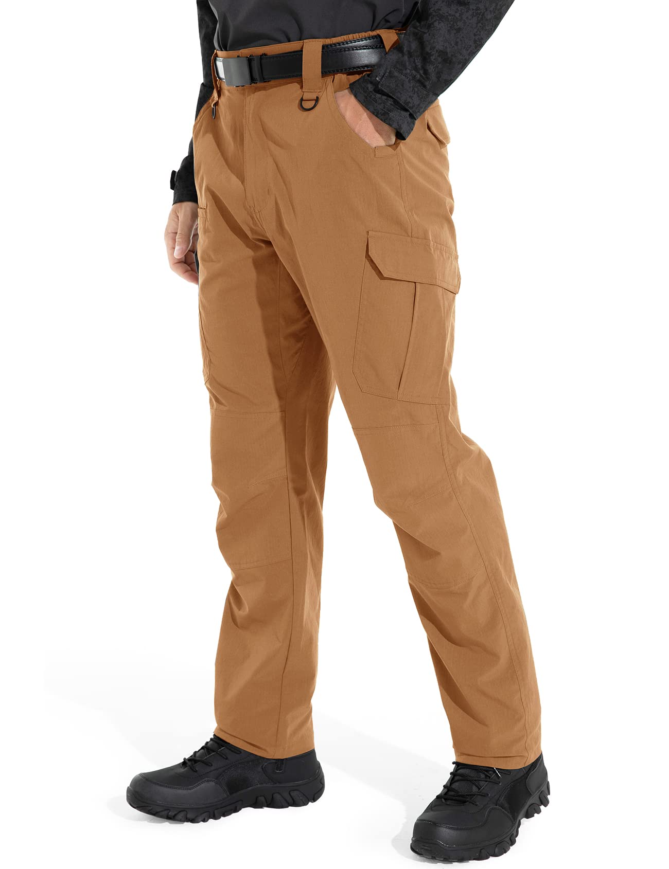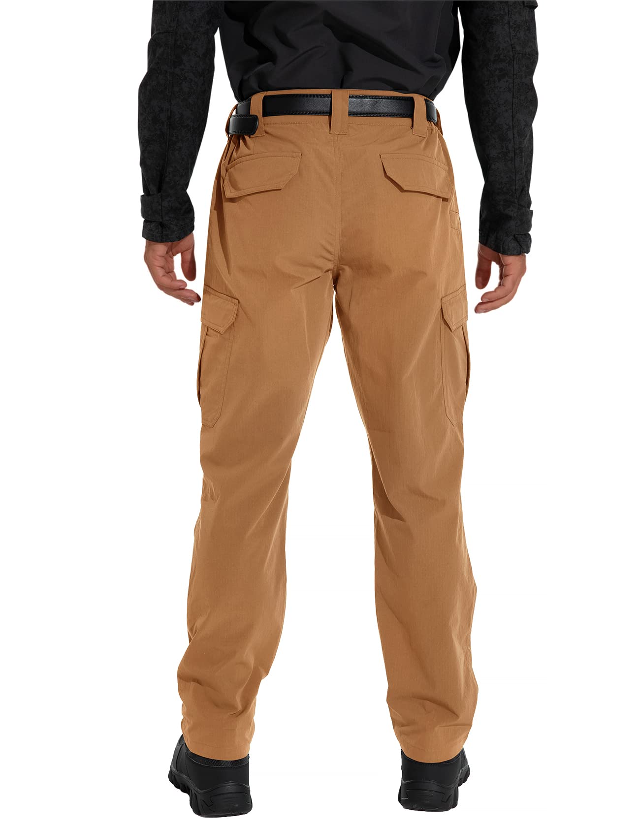 Lightweight tactical pants are made from ripstop fabric, the checkerboard weave prevents tears and abrasions while keeping the fabric weight down. The water-resistant finish resists soil, dirt, and stains for longer wear & maximum durability.