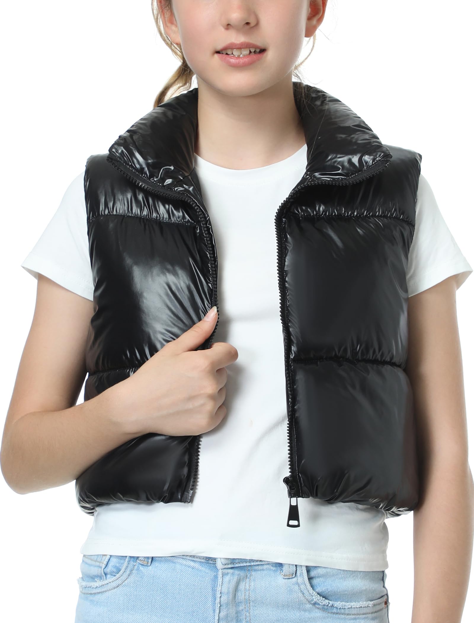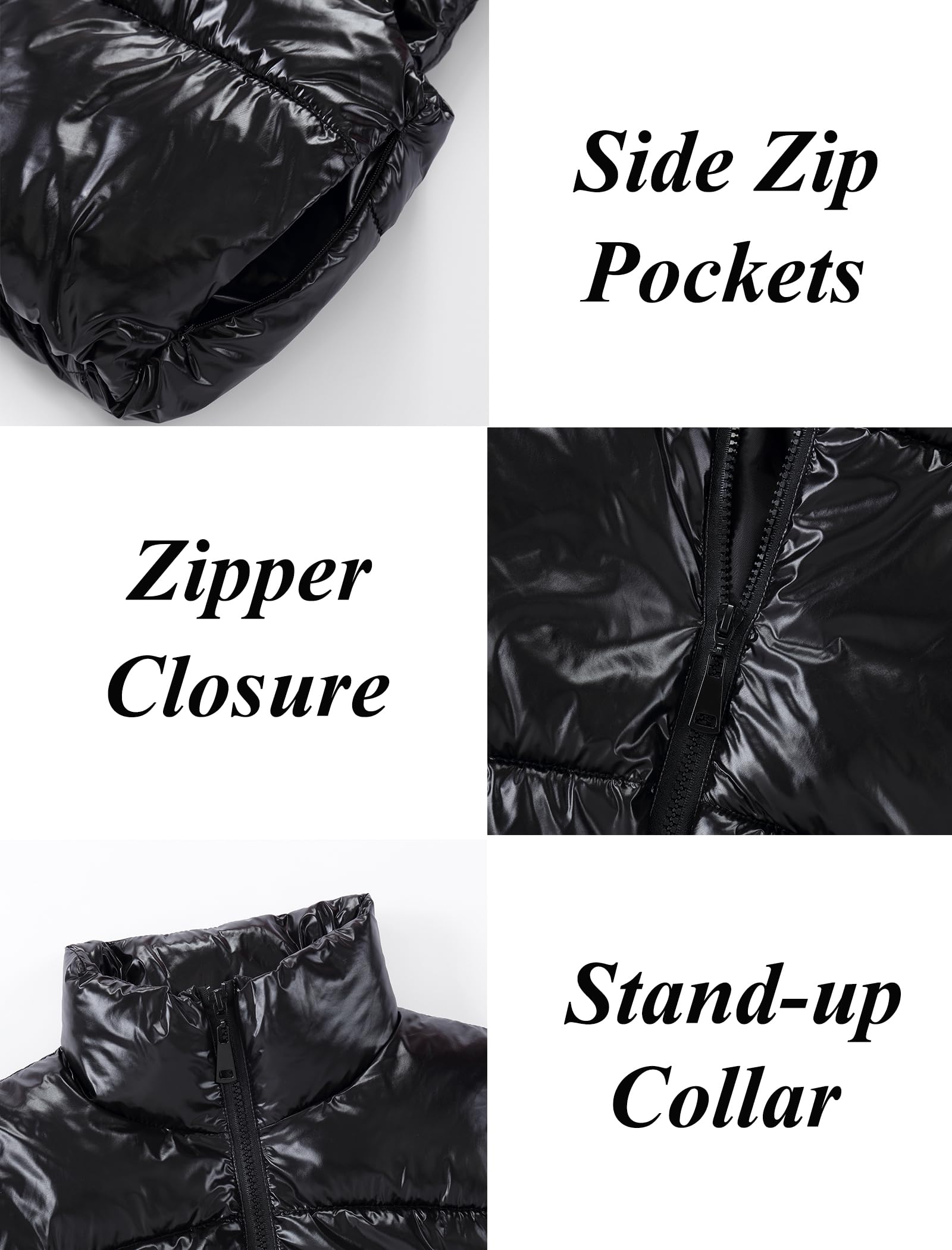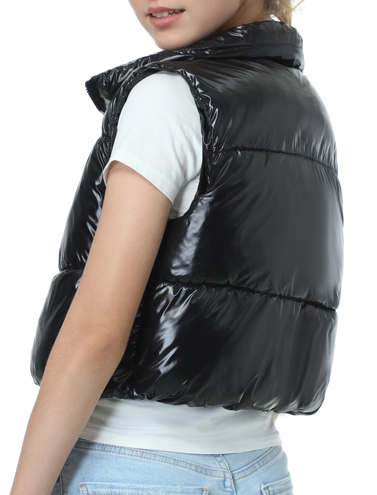 Puffer and Warm: The cropped vest has a sleeveless bodice with a smooth zipper. The stand collar traps heat and block cold to keep your neck warm. Two zipper pockets offer a cozy spot for your hands