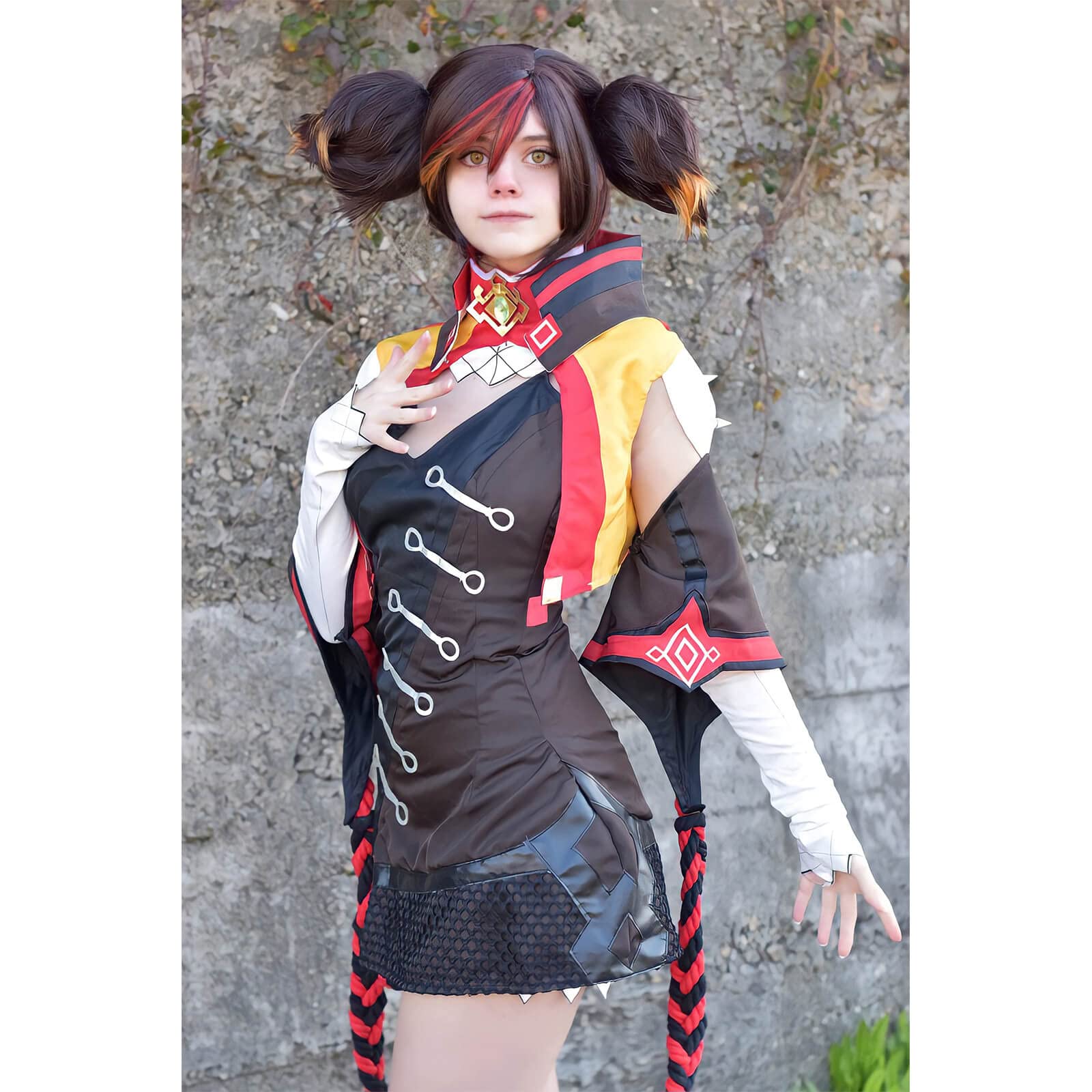 Includes: Xiyan cosplay dress, collar, gloves, leg loops, 1 x fishnet stocking, 1 x white socks, 4 x finger rings, leggings
