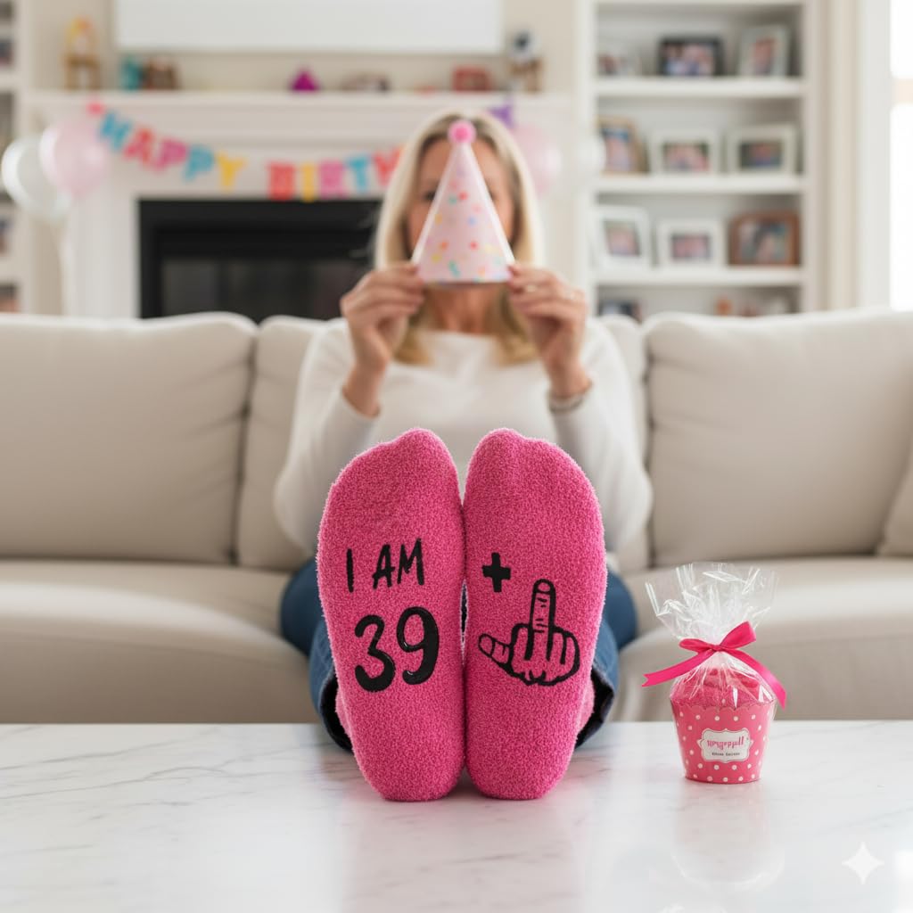 40TH BIRTHDAY GIFT IDEAS: Say it with socks - "I AM 39+1." These are suitable for any holiday gifts, such as Birthday gifts, Christmas gifts, or White Elephant gifts.