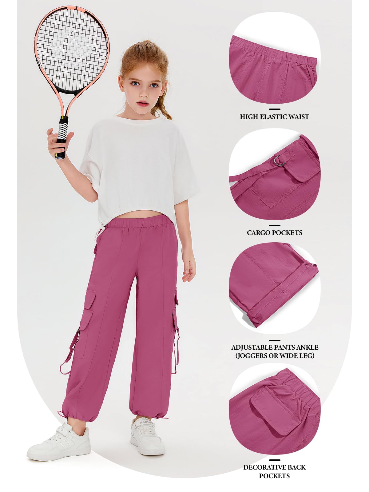 Materials: Parachute pants for girls are made of non-stretch, breathable, lightweight, quick dry, super soft and durable fabric that will keep you comfy and cozy all day long, perfect for active kids