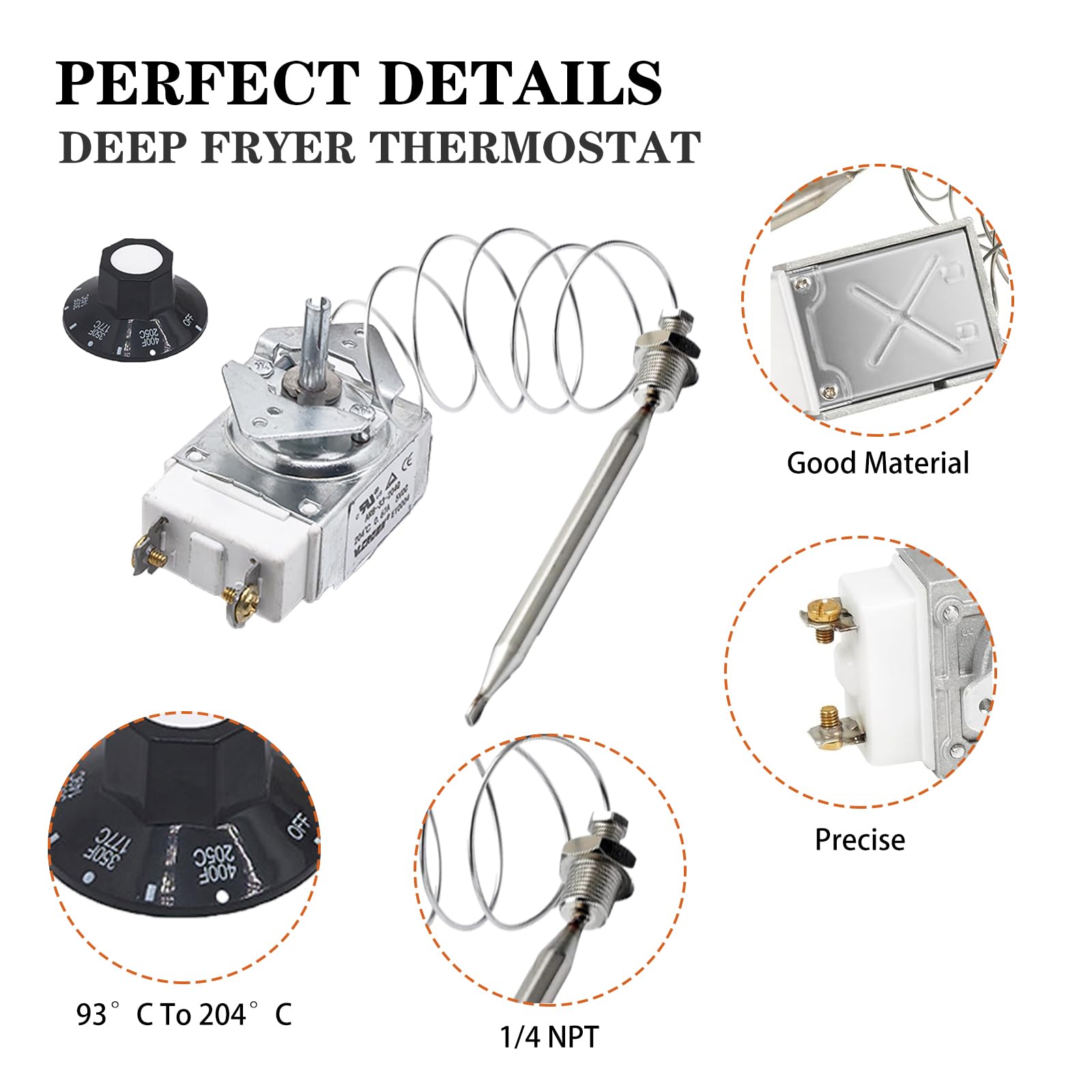 Fitment: Our Thermostat for Fryer 1/4" Mpt Stuff Box is compatible with Pitco 60125401 60124501, Robertshaw RX-1-36, American Range 11113 A50400, Imperial 1175 1175-RS, Royal Range 3113, Anets P8905-03, Blodgett Z1182151.