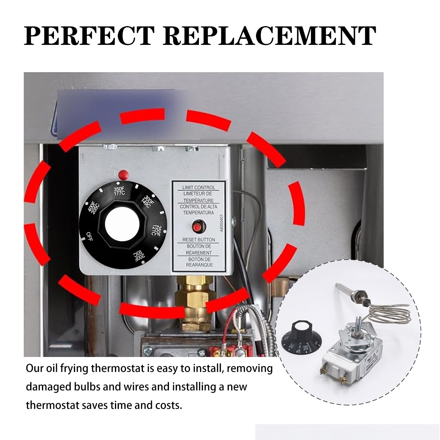 Simple installation: Our oil frying thermostat is easy to install, removing damaged bulbs and wires and installing a new thermostat saves time and costs.