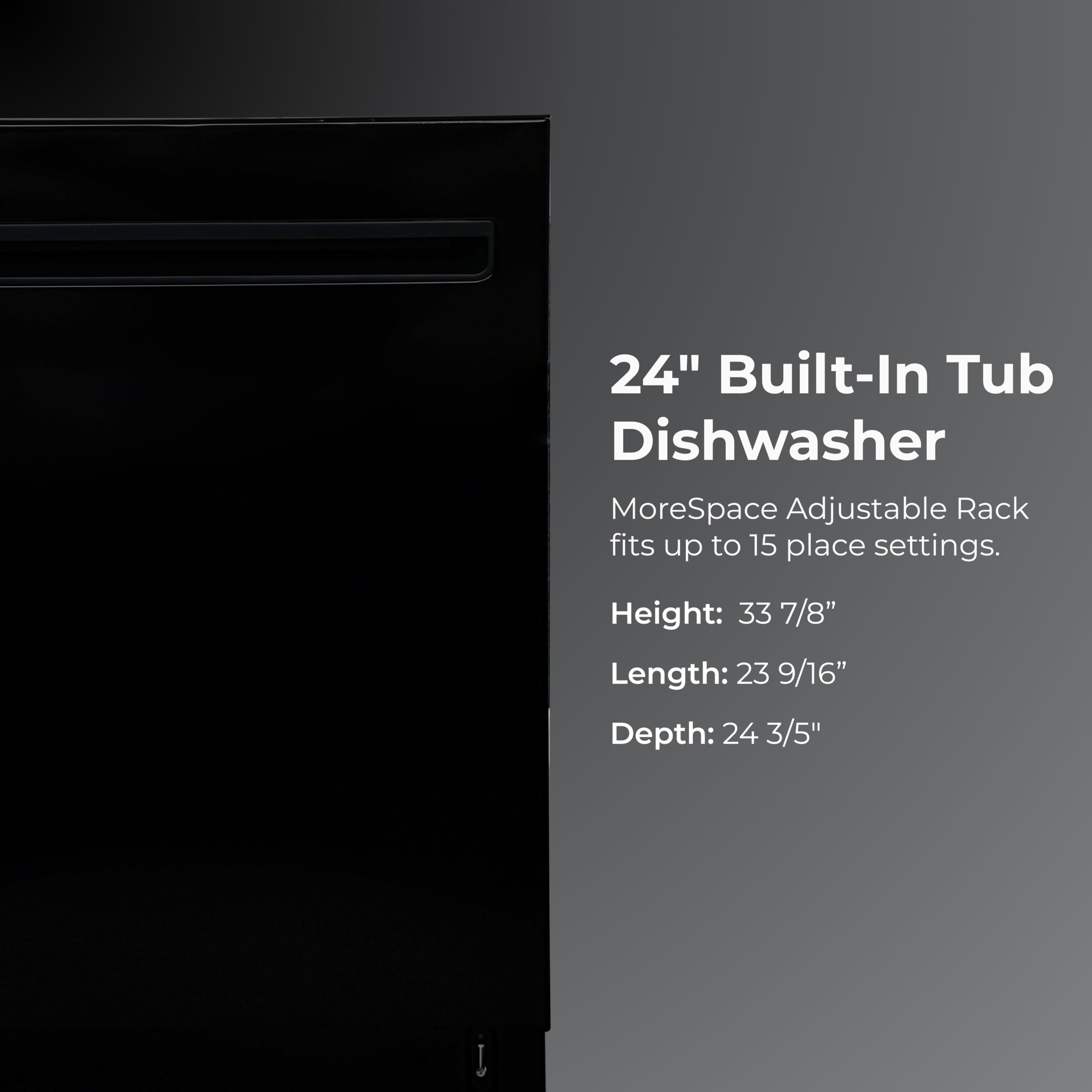 The Kenmore 24" Built-In Dishwasher gives you a powerful clean with an ultra-quiet performance. UltraWash Plus blasts away stuck-on messes with 3 pressurized spray arms and filtered water. The SmartWash cycle adjusts to the mess level, while TurboDry ensures spot-free dishes, even plastics. The EasyFlex Third Rack adds 35% more space for large utensils, and the MoreSpace Adjustable Rack makes room for tall or bulky items. With room for 15 place settings, you can handle big meals with ease. At just 45 dBA, it’s whisper quiet, and an LED floor light shows when a cycle is running. Hidden smooth-touch controls keep the exterior clean and modern. ENERGY STAR Certified with built-in Leak Detection and Delay Start for flexible, worry-free dishwashing.