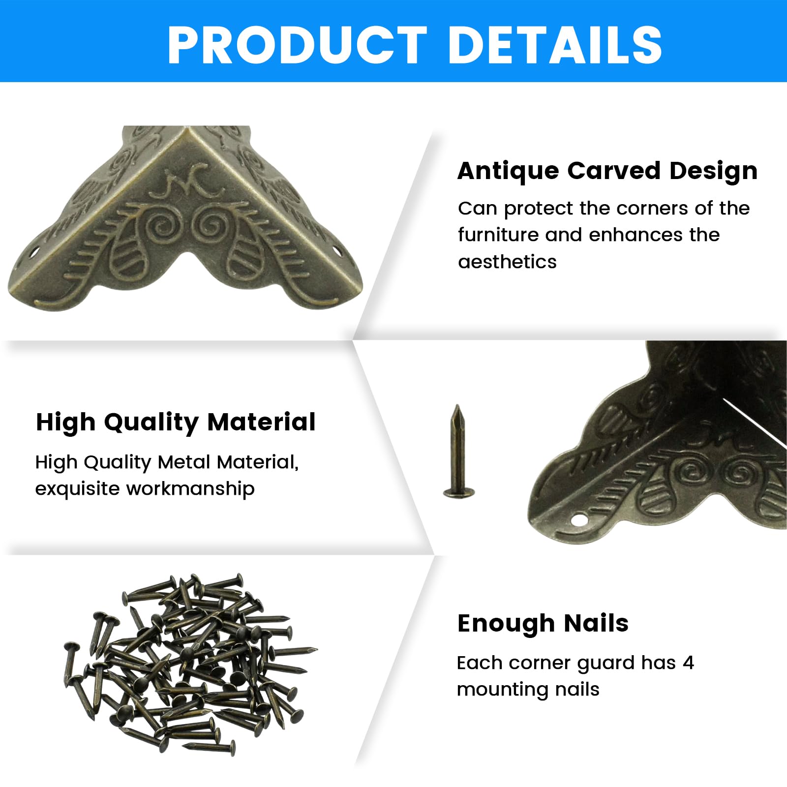Widely Use, the furniture corners are designed to protect your storage Box, Jewelry Case, Wooden Chest, Table, Cabinet etc. frome being damaged and make them durable and beautiful.