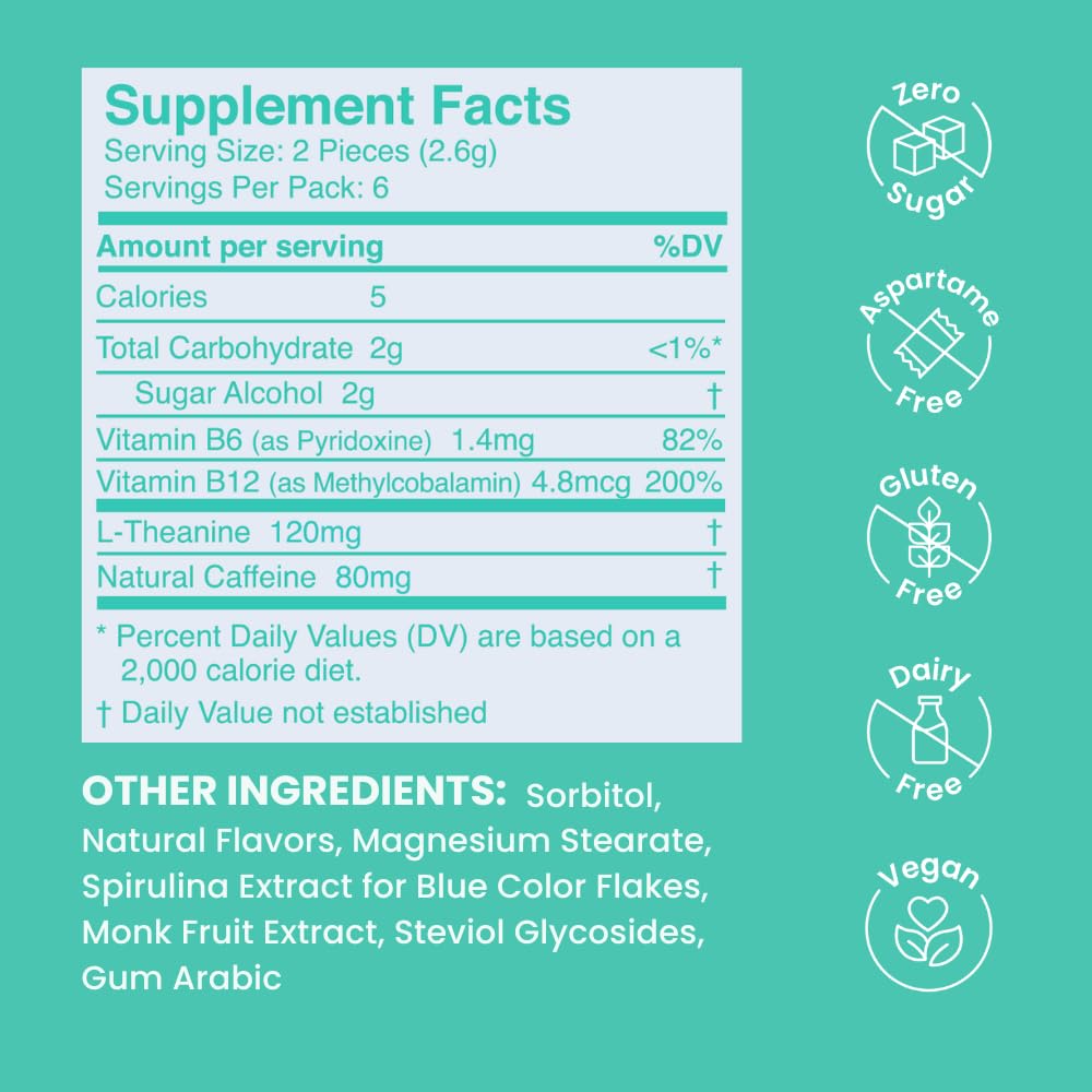 Fast-Acting Formula - Neuroβs patented blend delivers clean, plant-based energy and cognitive support with its compact sugar free mints. Natural caffeine, L-theanine, and B vitamins helps you stay alert, sharp, and steady without the crash.