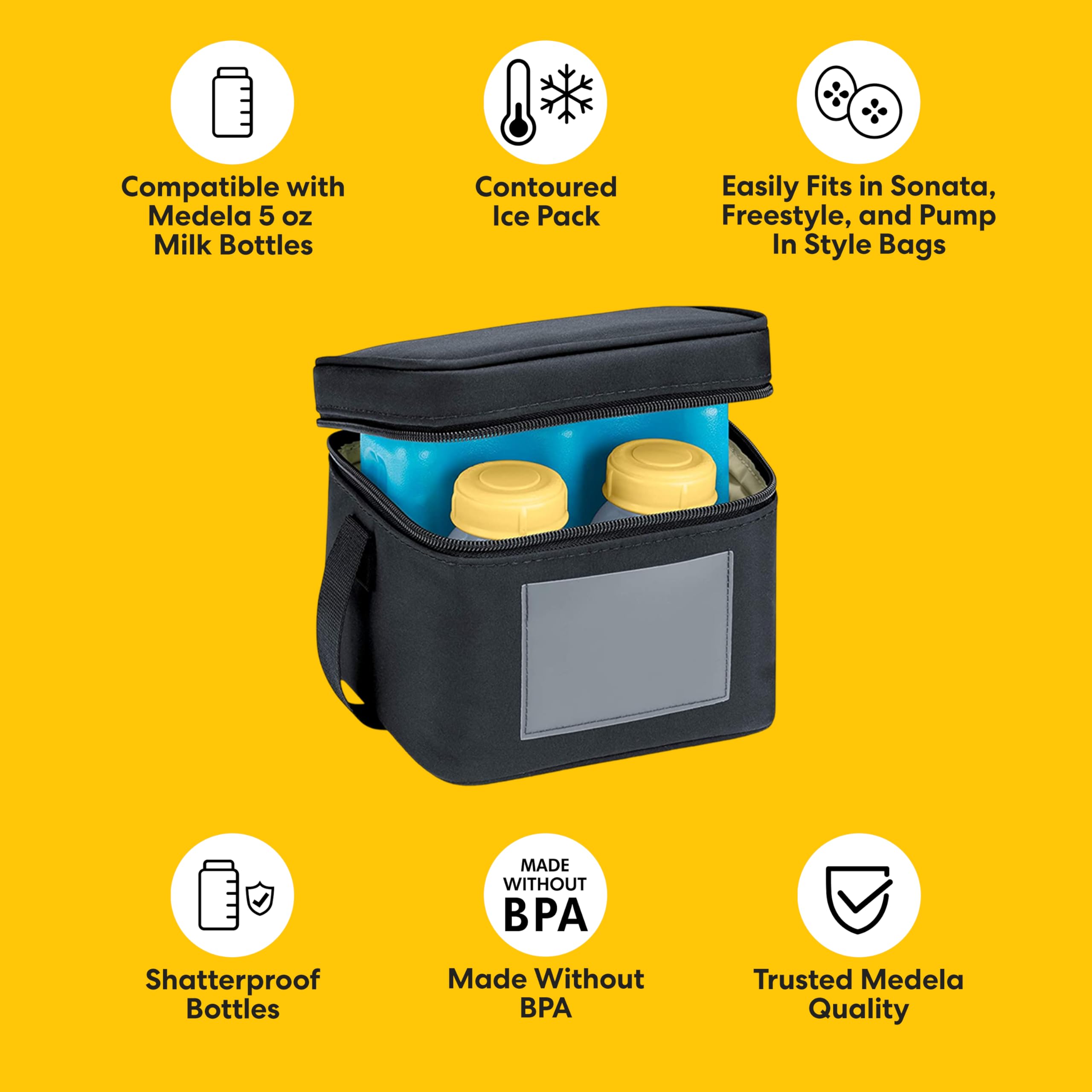 Compatible with Medela 5 oz Bottles: Both the cooler bag and contoured ice pack are compatible with Medela 5 oz milk bottles, which are also included with the Swing and Harmony breast pumps for ease and convenience