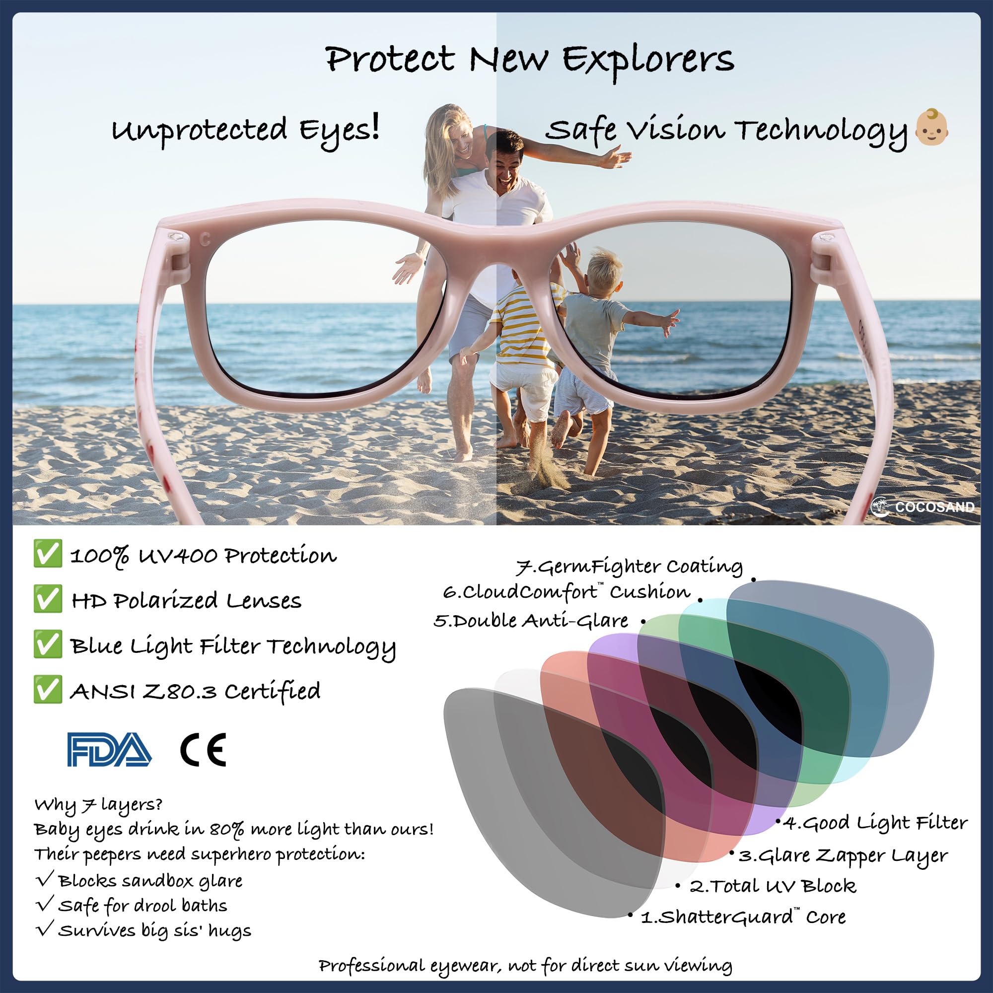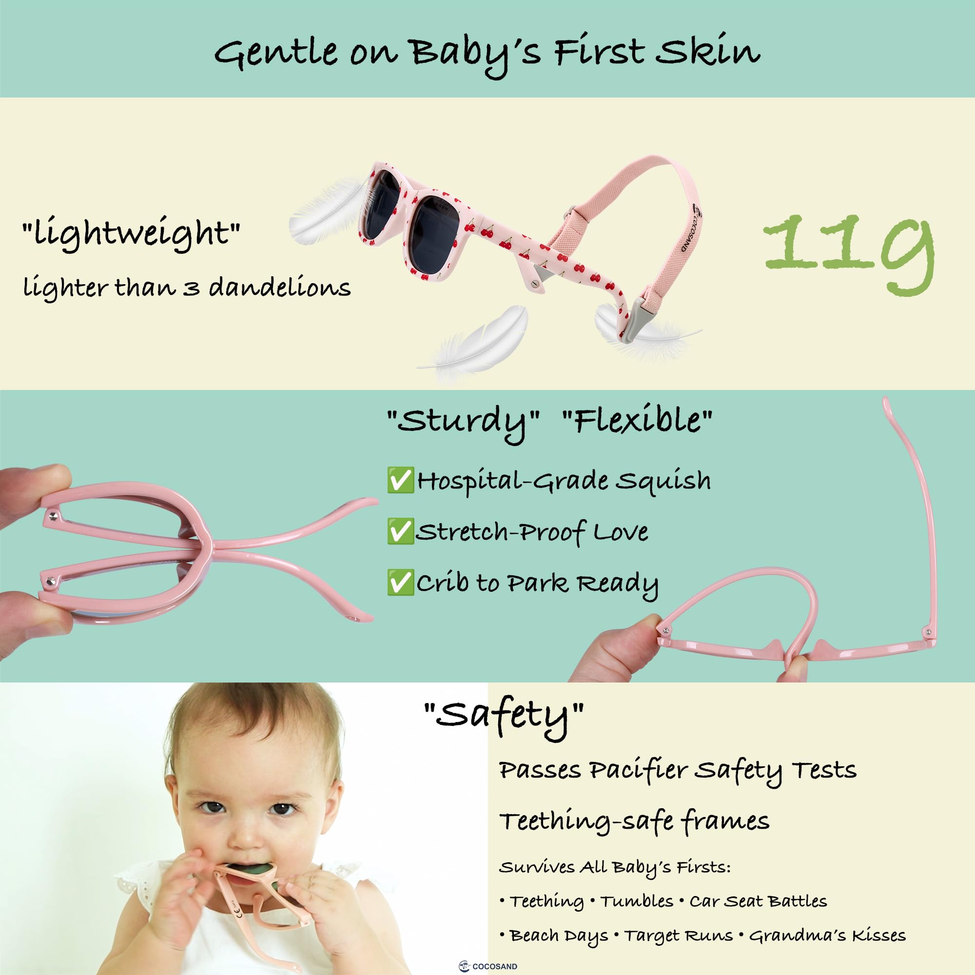 【Safety First for Your Baby】:COCOSAND baby sunglasses are a game - changer for 0 - 24 month olds. The polarized lenses protect eyes, and the TPE frame is as safe as can be. It's gentle on baby boys' and baby girls' skin, just like a soft hug. Whether they're infants or toddlers, it's a worry - free choice