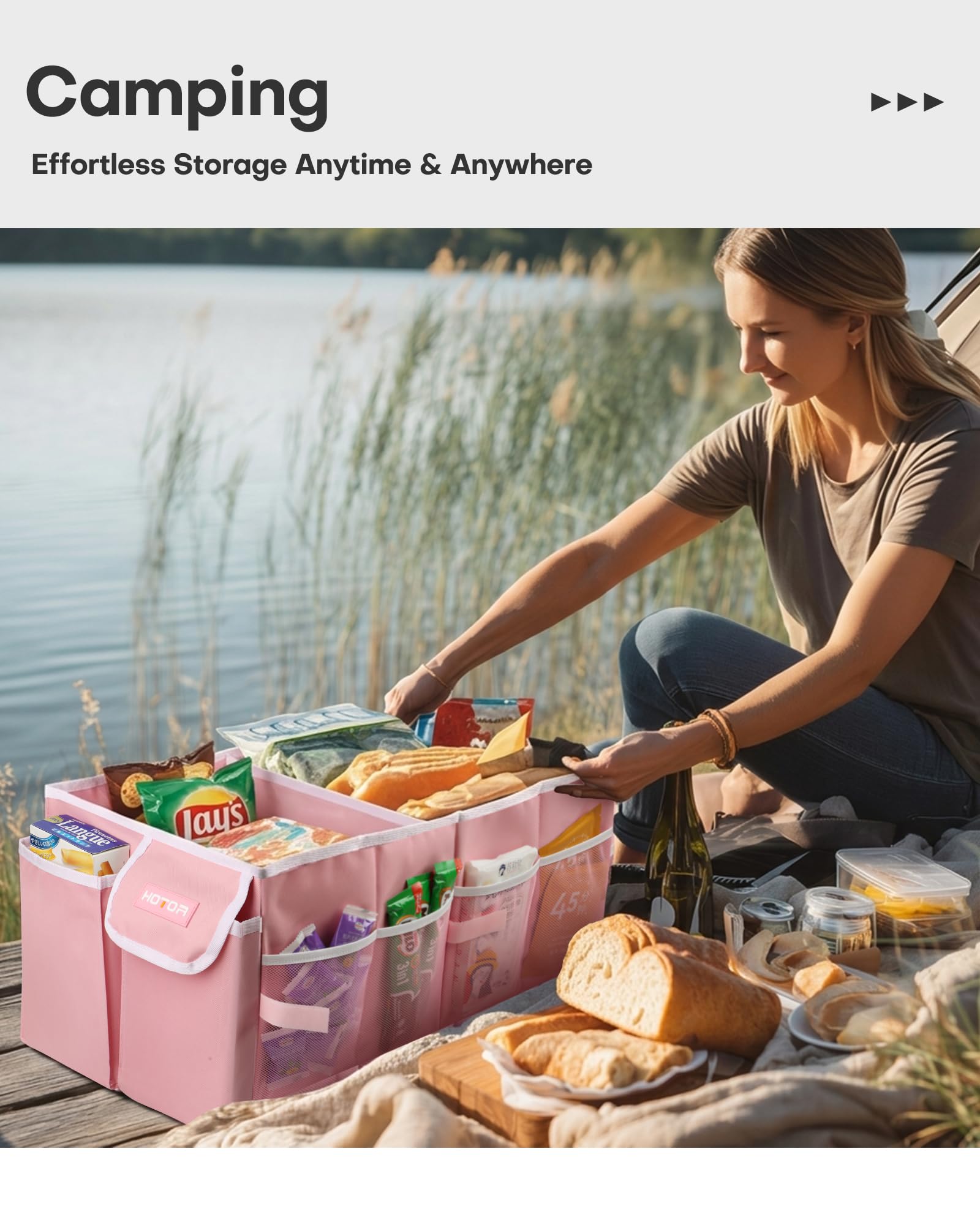 HARD-WEARING MATERIALS: Made of sturdy Oxford cloth with reinforced stitching on high-wear areas, this car organizer for trunk is built to last through heavy use. The thickened base panel and handles enable this product to bear over 60lb capacity.