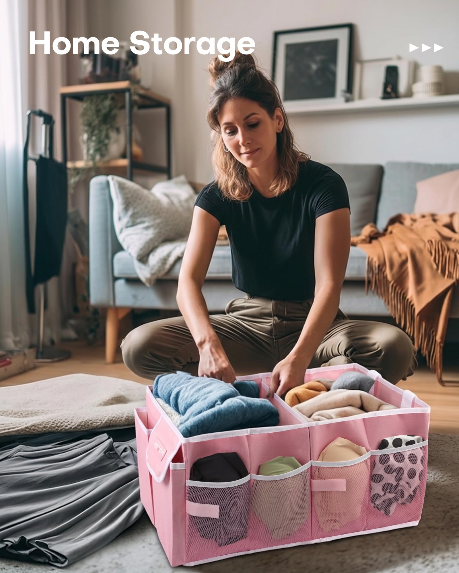FLEXIBLE CONFIGURATION: Adjustable side Velcro strips allow you to fold the car storgae organizer fully or halfway to fit your storage needs. Just put it in the trunk, backseat, front seat, or wherever you want in the car.