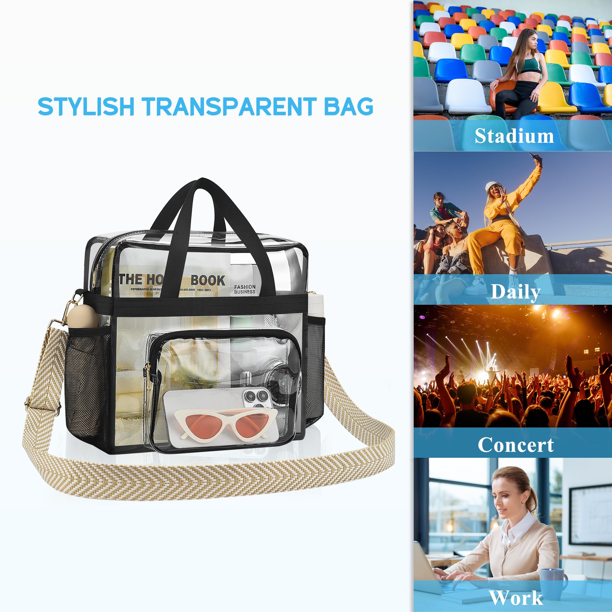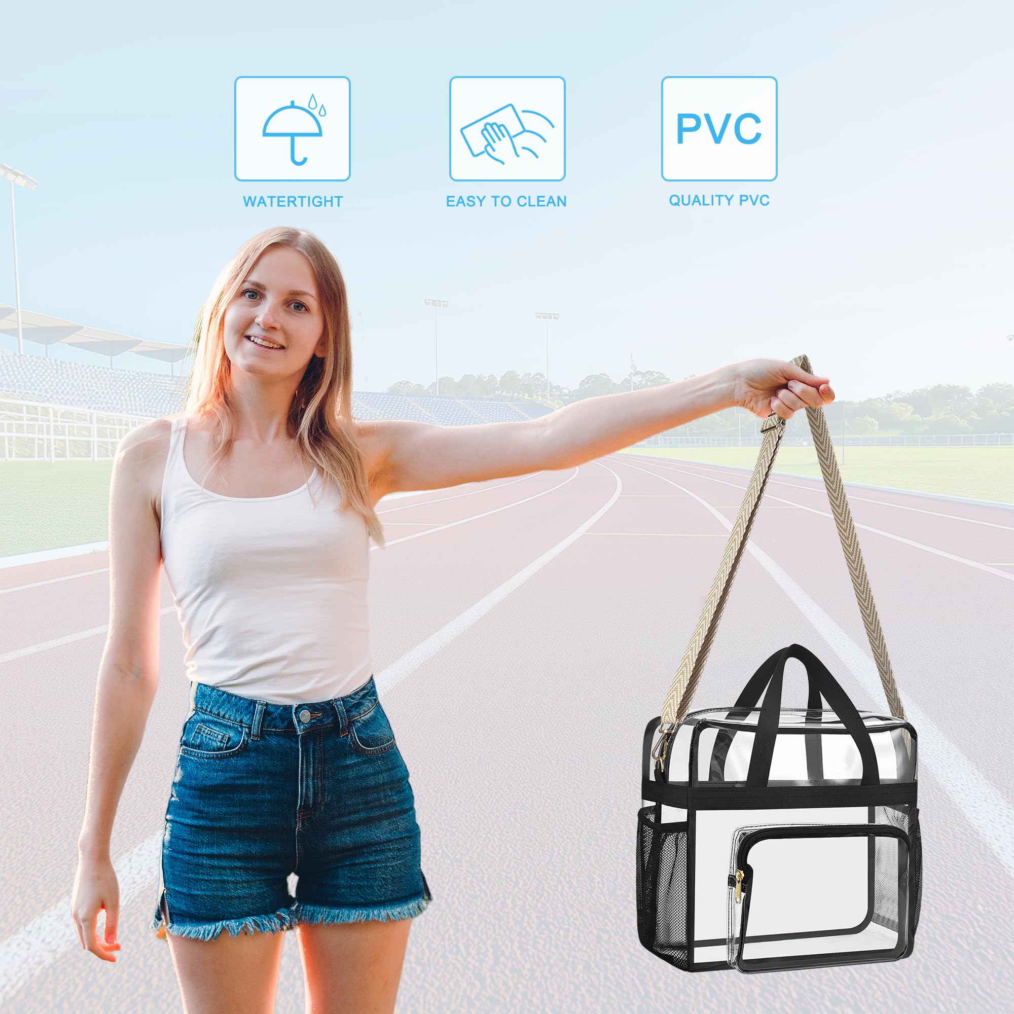 【Stadium Approved】With a size of 12"x 12"x 6", the clear tote bag is perfect for occasions where clear bags are required such as festivals, sports games, concerts etc. Quickly pass the security check.