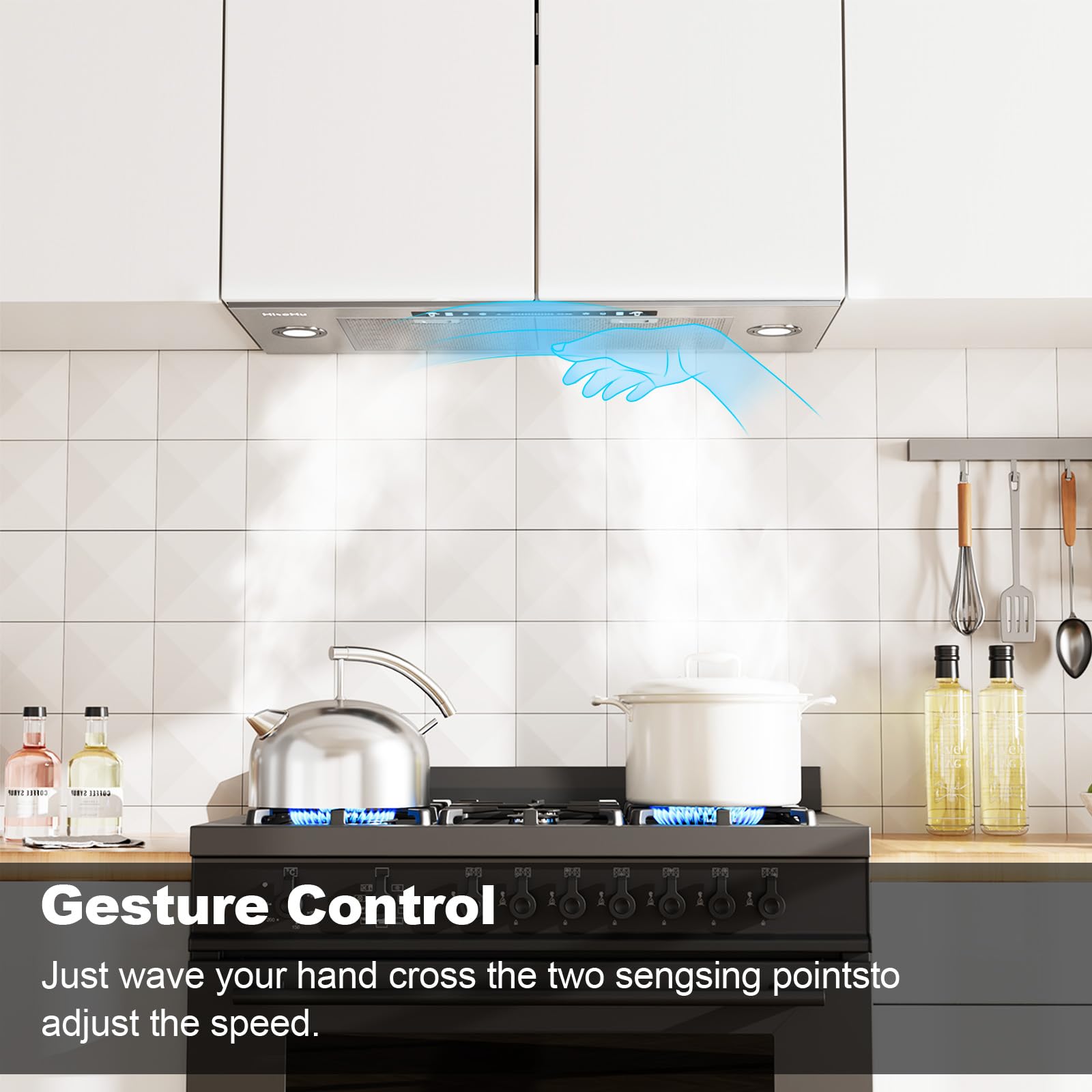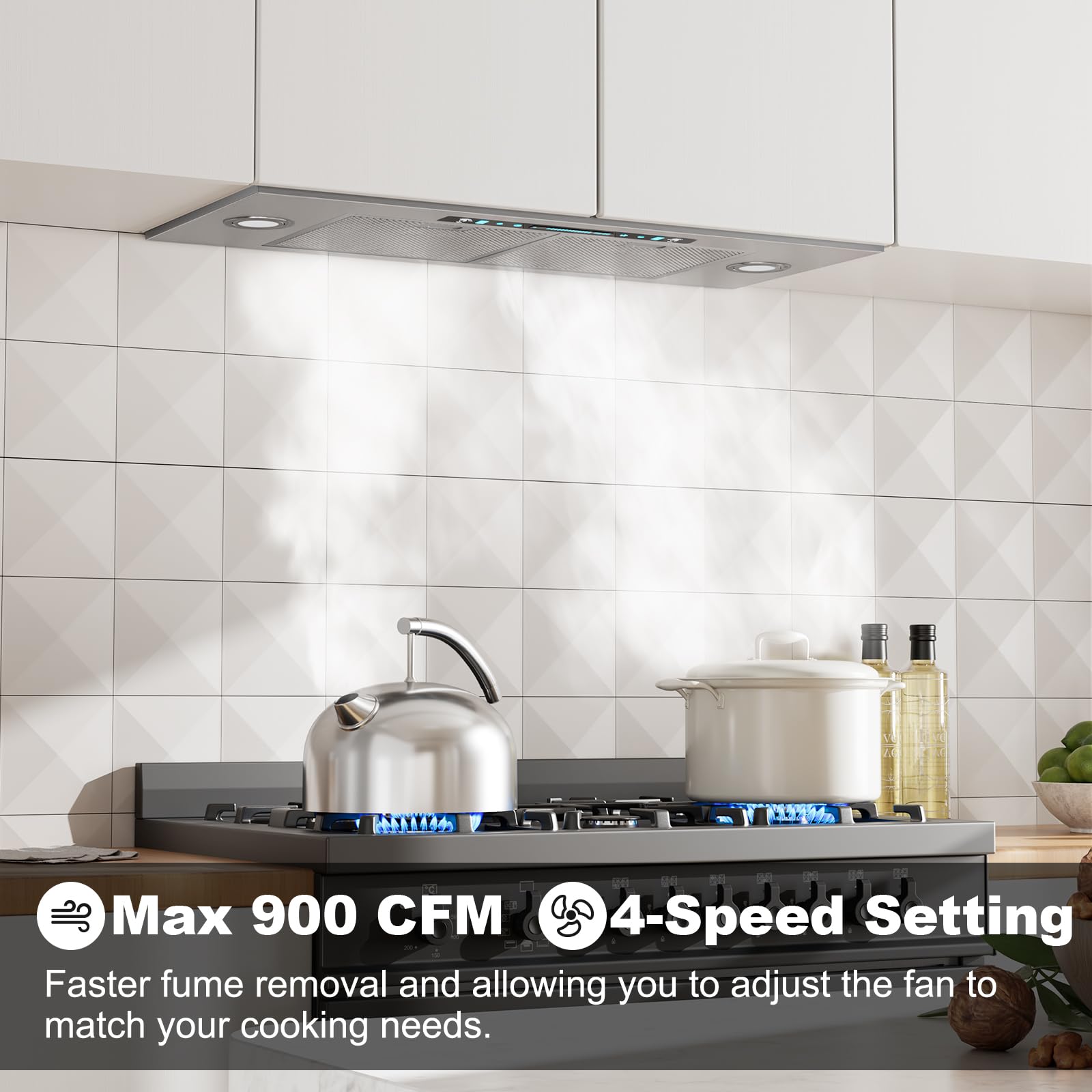 HisoHu Insert Range Hood 36 Inch, 900 CFM with Ducted Convertible Ductless (Kit Included), 4 Speed Gesture Sensing&Touch Control Panel, Stainless Steel Kitchen Vent (36 Inch)