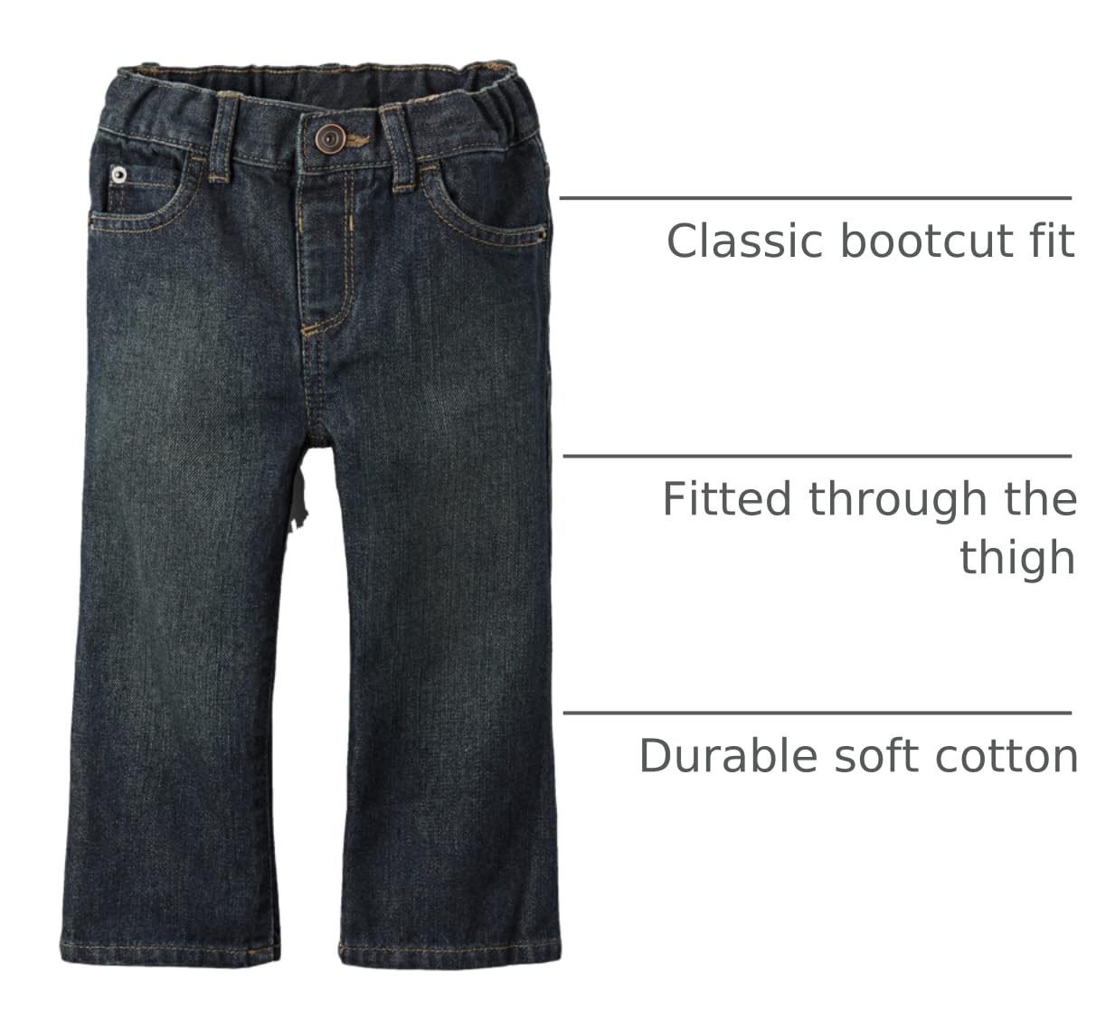 FIT & DESIGN: Classic fit, mid rise, bootcut leg
